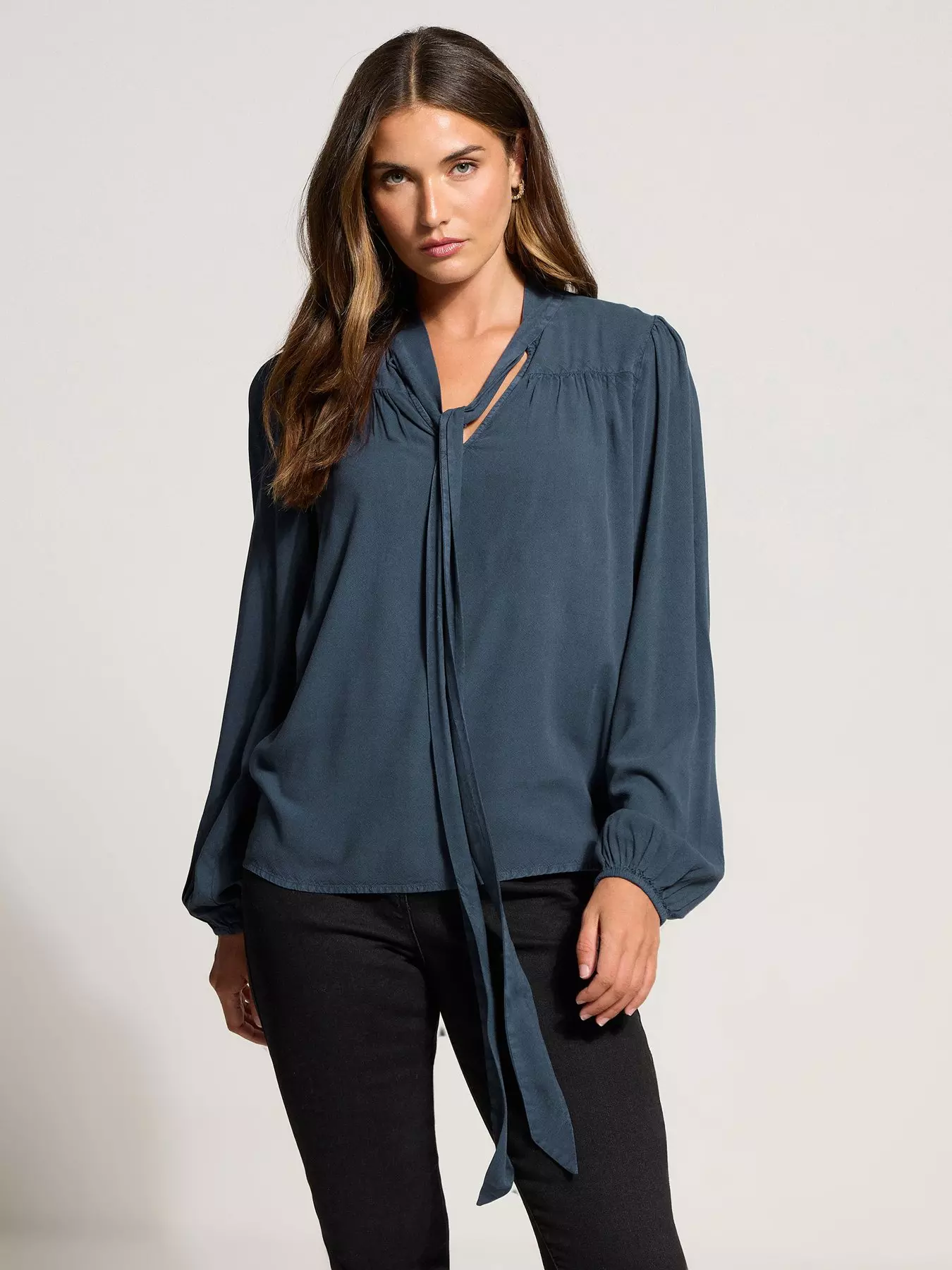 - Tie neckline