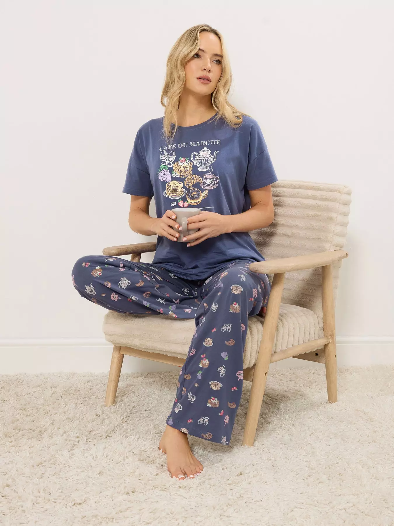 - Breakfast Club Short Sleeve Wide Leg Pyjama Set by Long Tall Sally