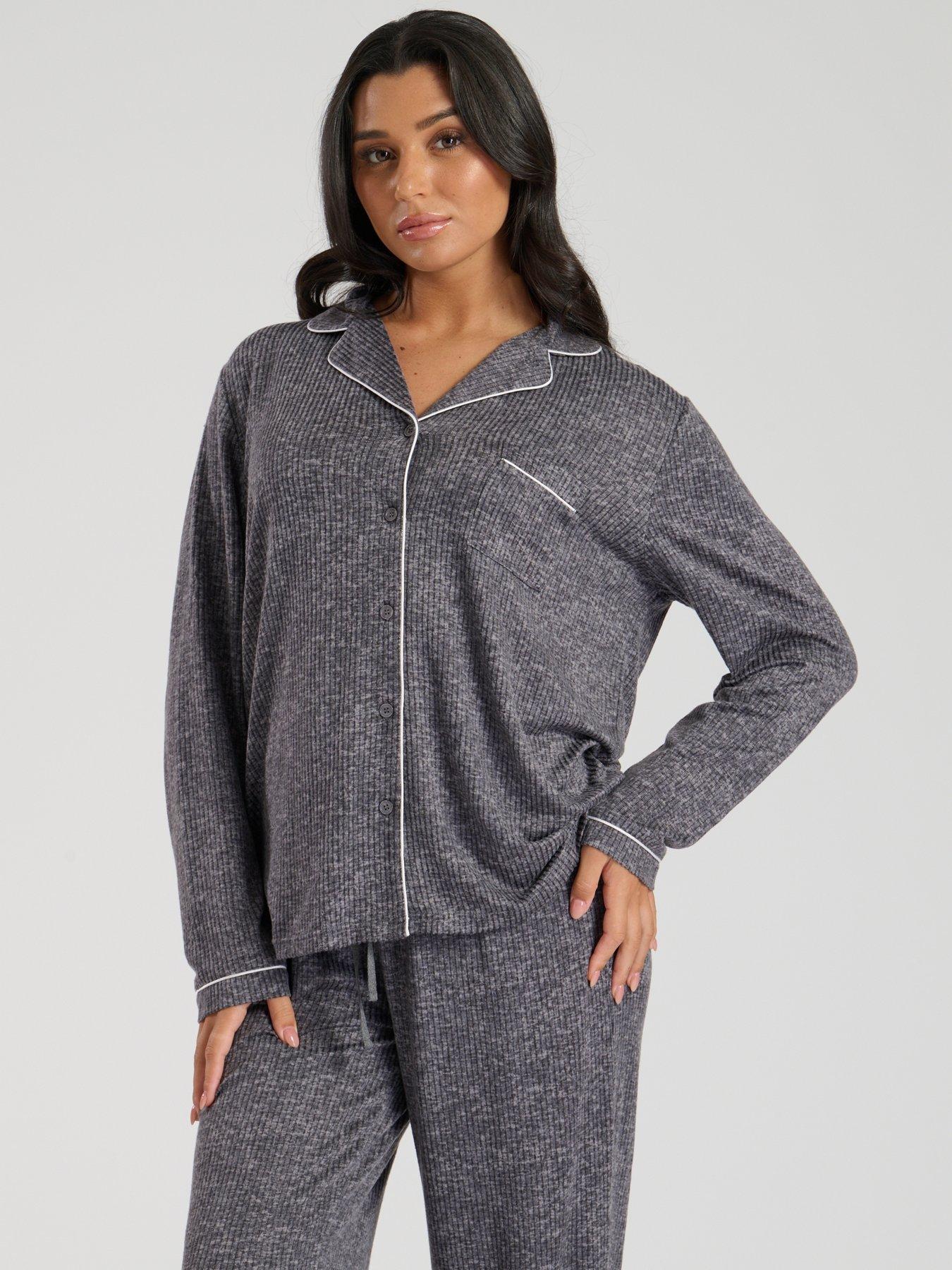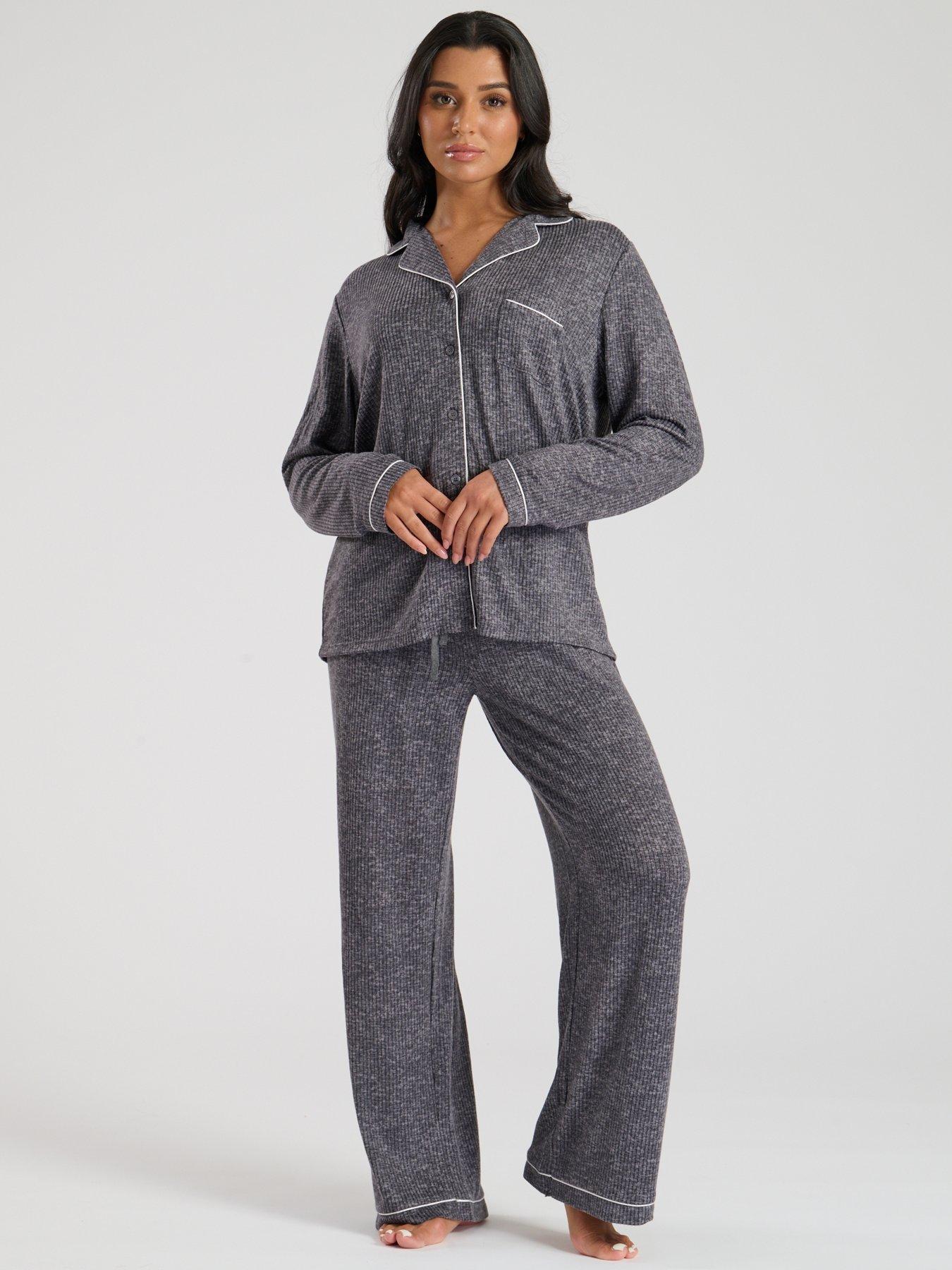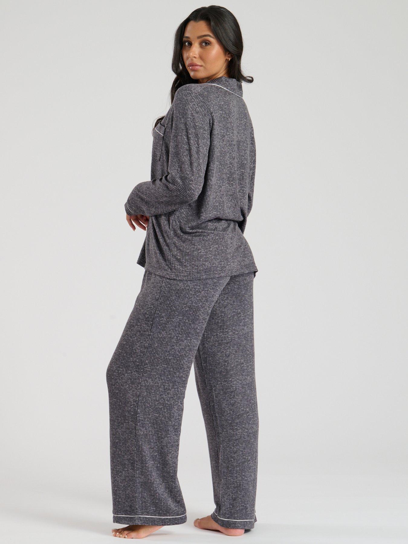 Loungeable Marl Brushed Knit Rib Traditional Pyjama Set