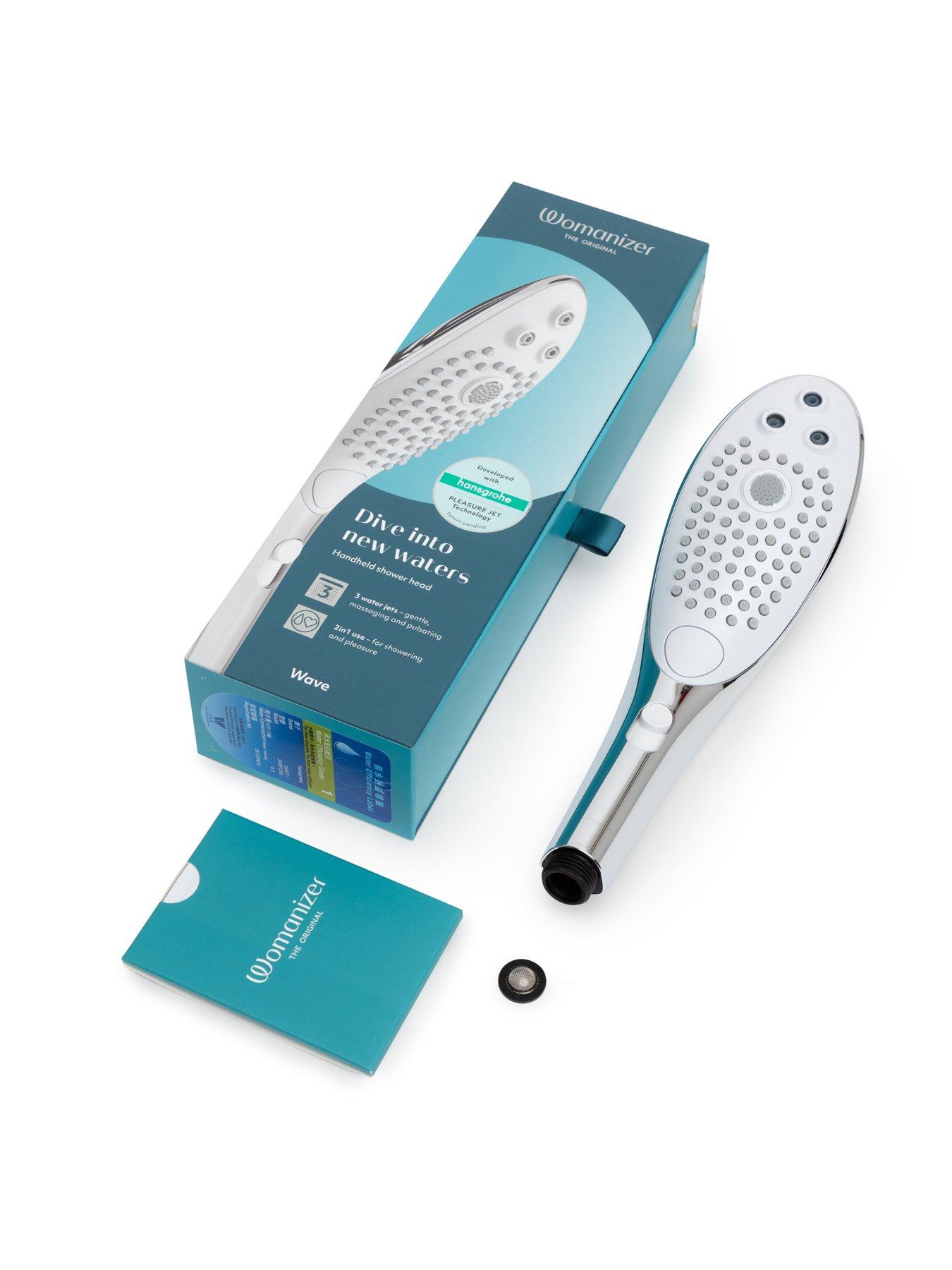 Lovehoney Womanizer Wave Chrome - Showering just got sexier!Introducing Womanizer Wave - The world's first pleasure shower head, as seen on Netflix.Womanizer Wave is the first ever combined shower head and water massage clitoral stimulator, uniting the expertise of bathroom experts Hansgrohe and pleasure leaders Womanizer to deliver a truly outstanding crossover - the pleasure shower head. Wave can be used just like any other regular shower head or as a pleasure toy. Discreet but stylish, Wave is a high-quality shower head but at the same time a unique provider of exquisite orgasms. 3 water jets PleasureJet and PleasureWhirl settings stimulate the clitoral area, while the PowderRain setting provides a luxurious shower. All settings have been finely honed by market-leading bathroom specialists Hansgrohe for optimum performance.