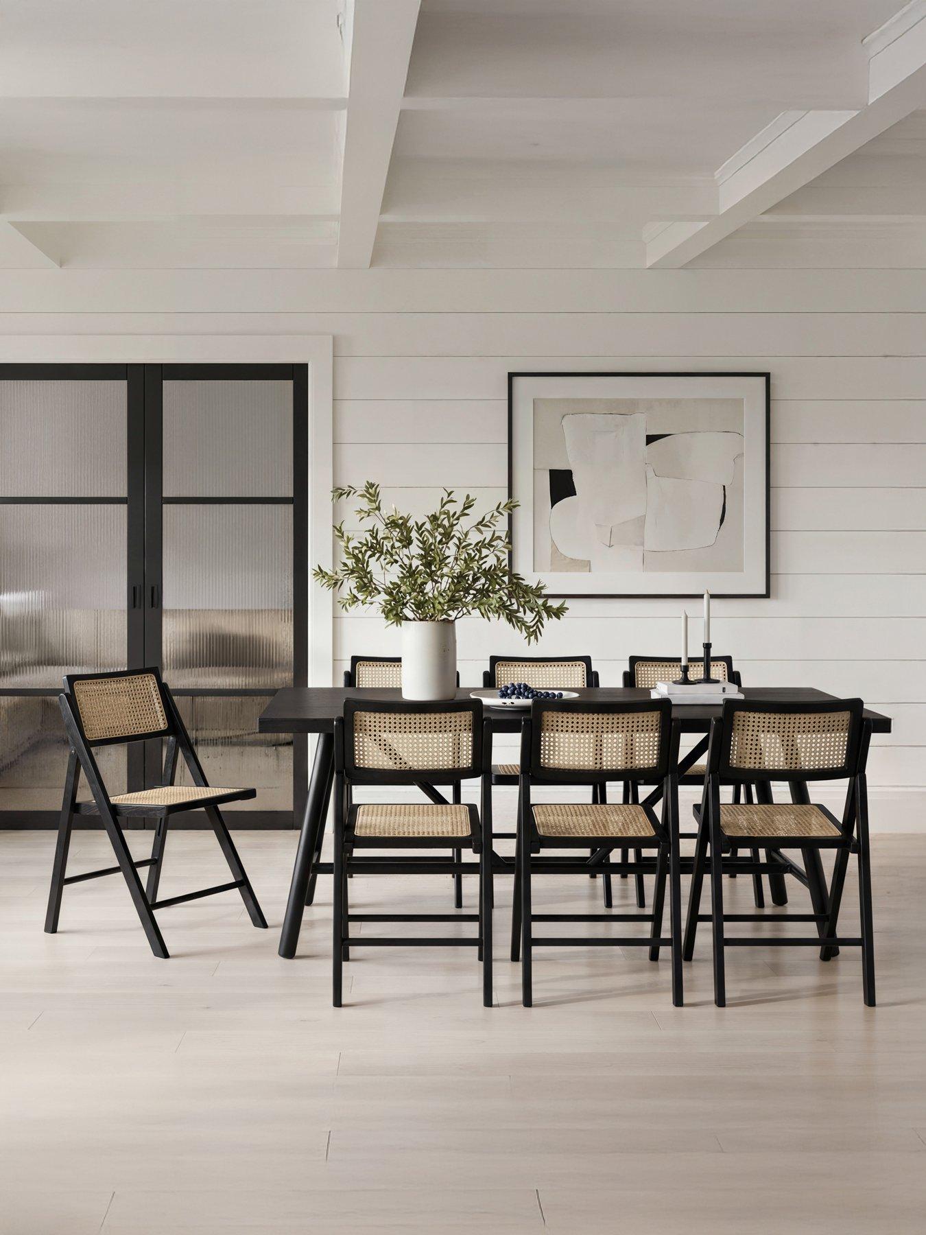 LPD Home Ashton Black Dining ChairThe Ashton Dining Chair blends modern and natural elements with a black matte grain finish and rattan detailing on the back and seat. Built on a sturdy ash wood frame, this foldable chair offers versatile style and practical convenience, perfect for everyday dining or extra seating.