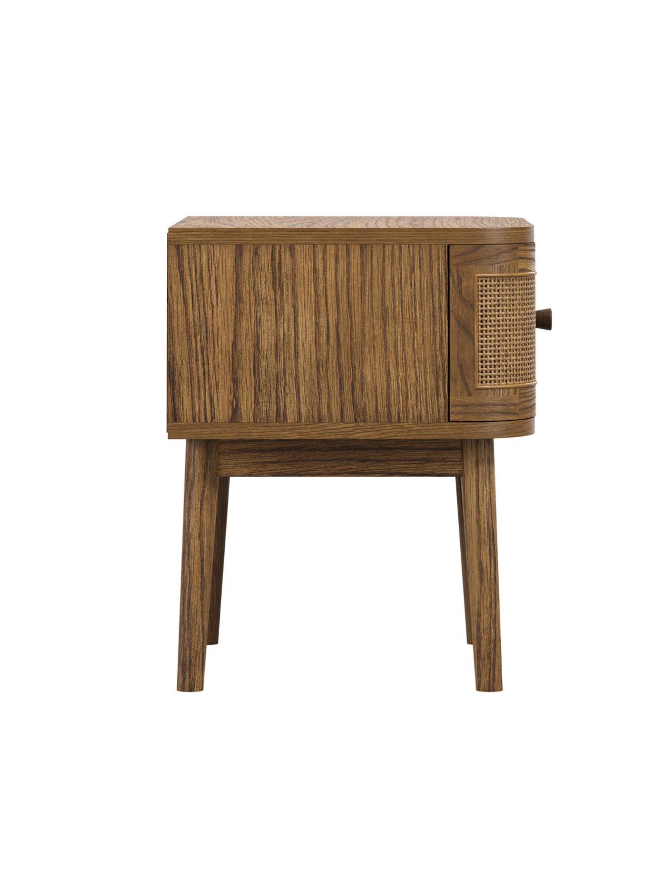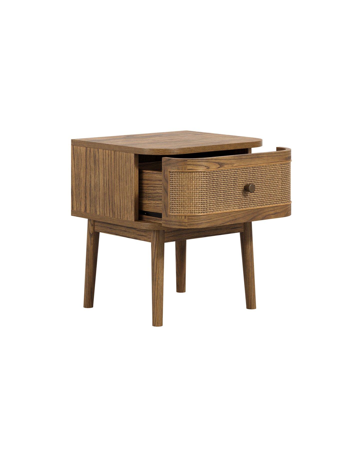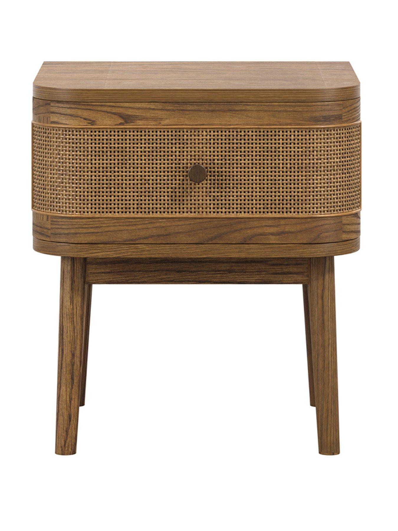 LPD Home Callie Smoked Bedside CabinetThis bedside cabinet features a distinctive smoked colour and is crafted with curved edges on the drawers, adding a touch of elegance to its design. Made from durable wood, bedside offers a spacious drawer, equipped with drawer stoppers to ensure smooth and secure operation.