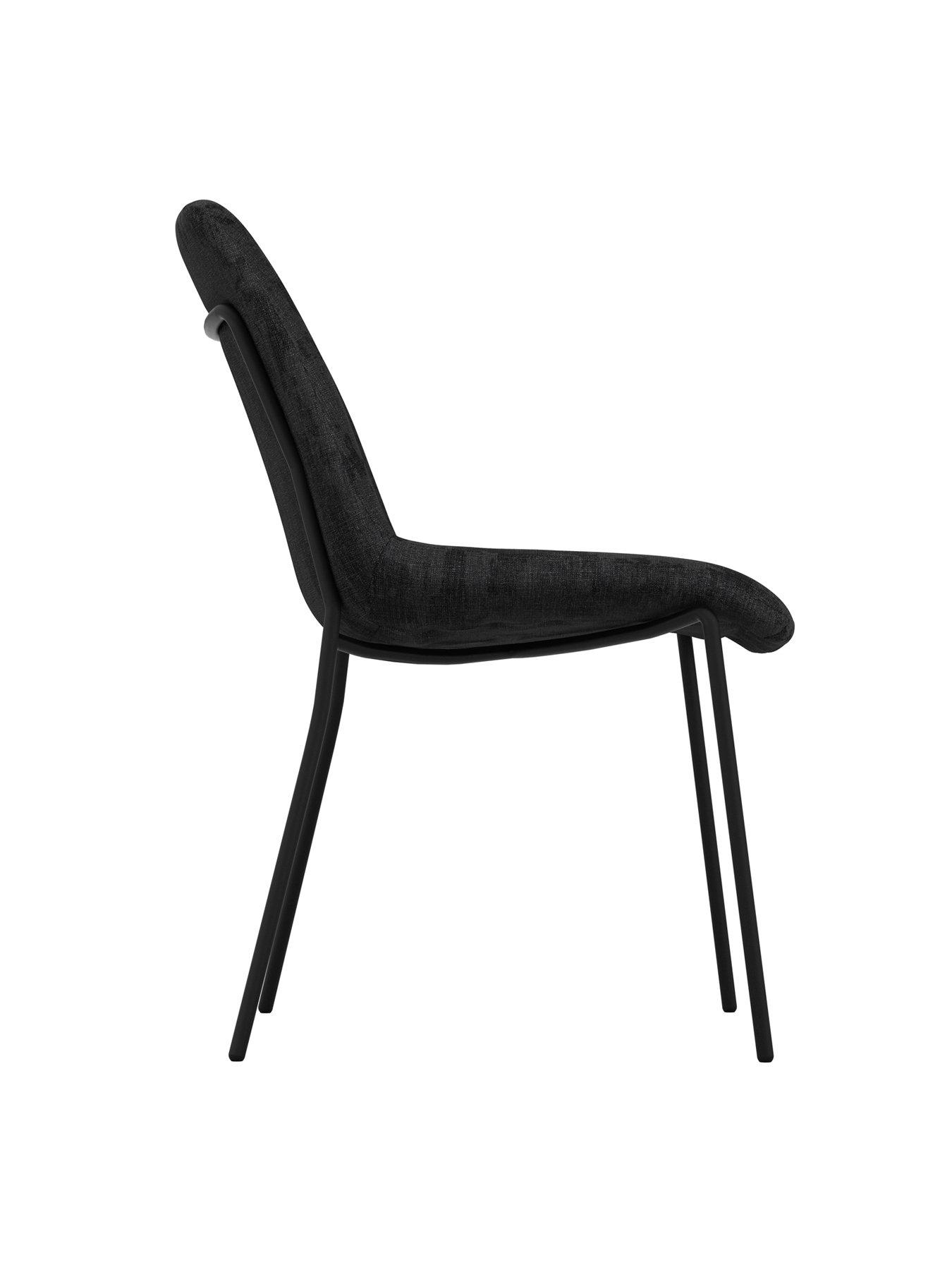LPD Home Set Of 2 Carlo Black Dining ChairsThe Carlo chair features Black textured velvet upholstery, Matte Black metal legs, and a comfortable curved back. Its design showcases the curved metal frame on the back, making it a stylish addition to your dining area. Perfectly pairs with the Antibes dining table for a cohesive look.