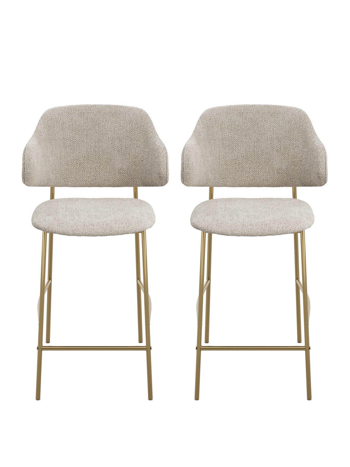 LPD Home Set Of 2 Dorchester Bar StoolsUpholstered in a neutral Wheat weave fabric with a sleek golden metal frame. Featuring a supportive curved backrest and padded seat for comfort, this versatile stool blends timeless elegance with contemporary style, perfect for kitchens, dining areas, or home bars.