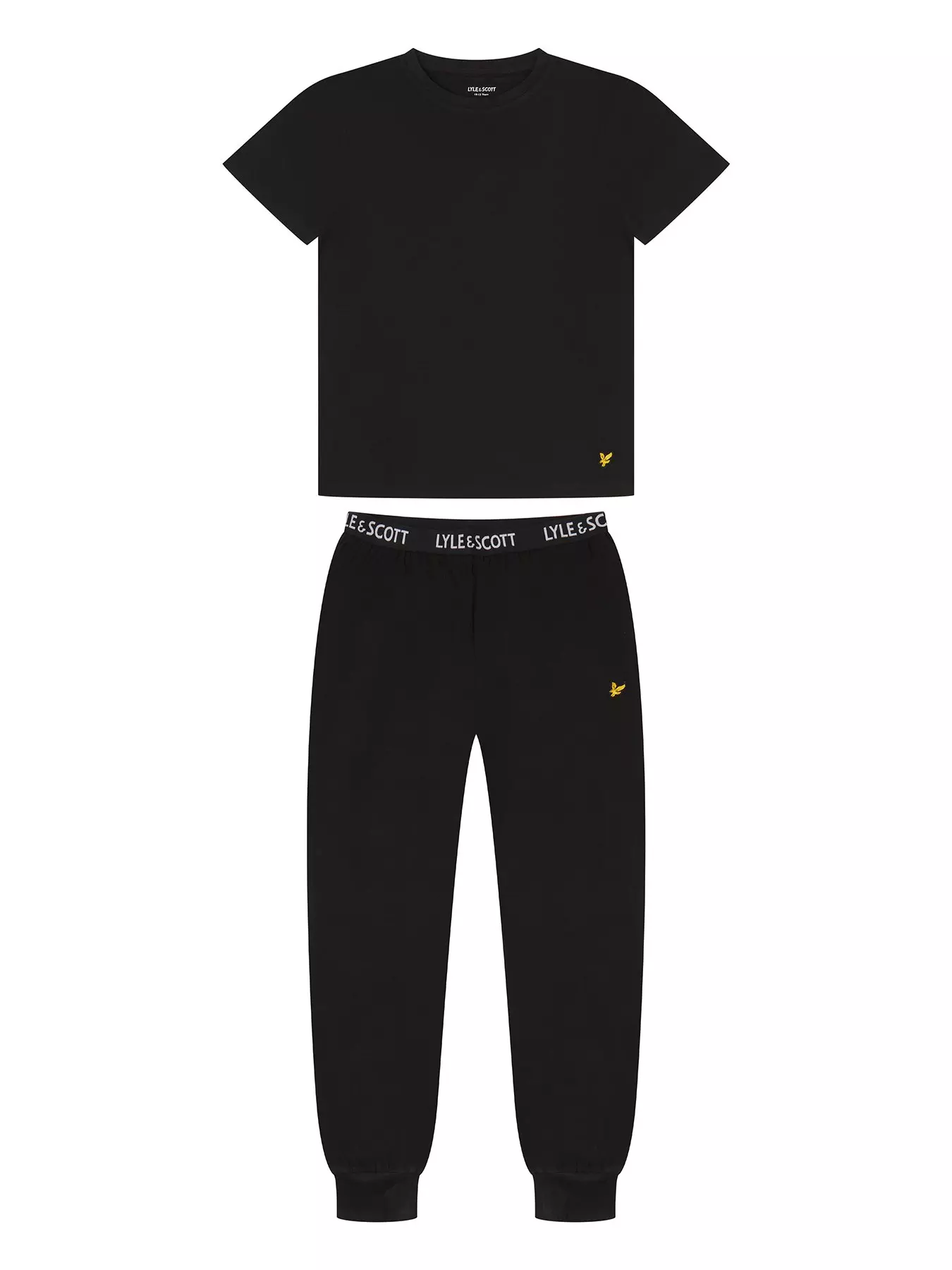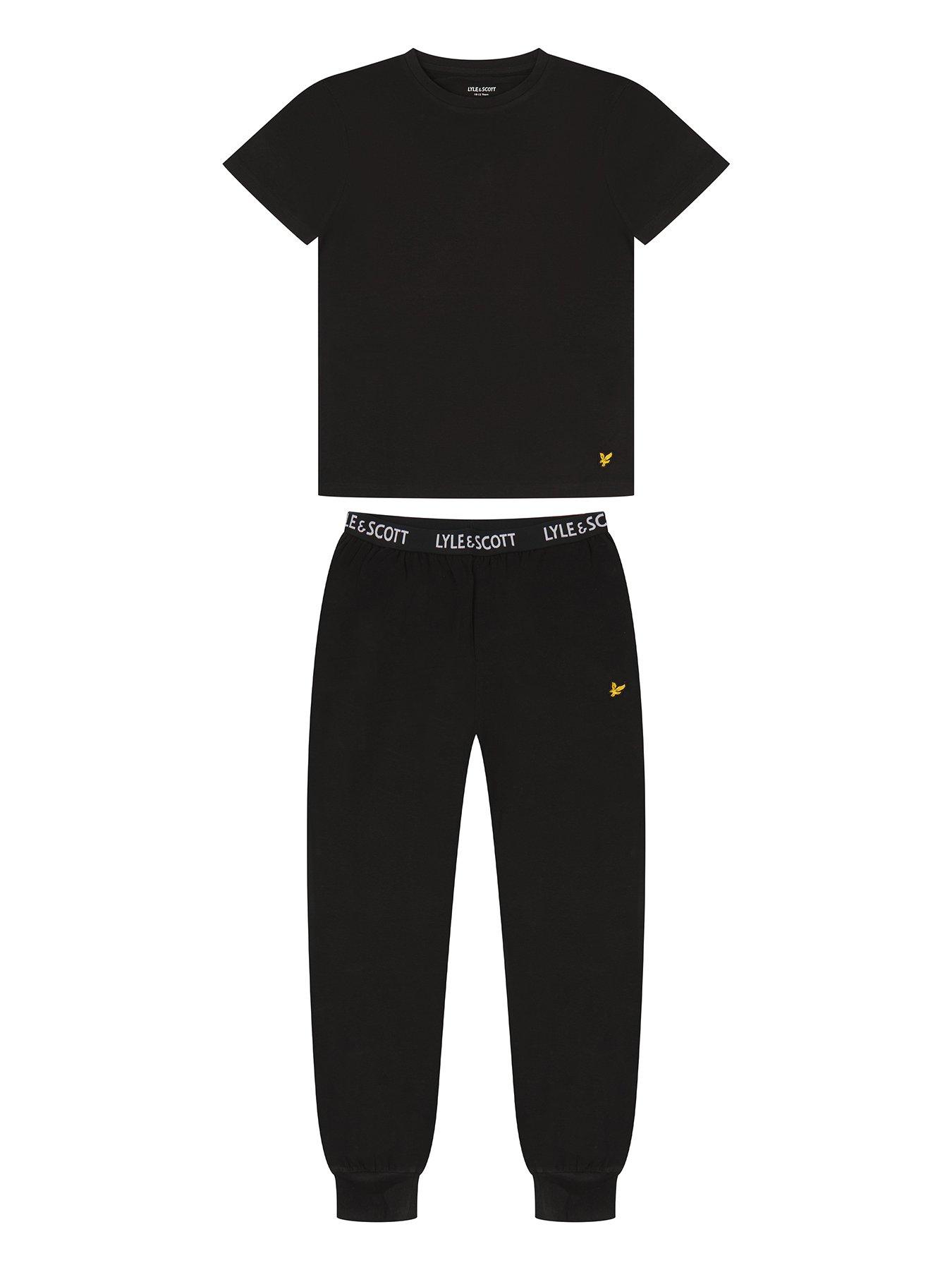 Lyle & Scott Boys Sleepwear Set - BlackLyle and Scott Daffy boys super soft cotton loungewear plain t-shirt with classic embroidered eagle and logo-waistband cuffed pants set. Perfect for any occasion or gifting.