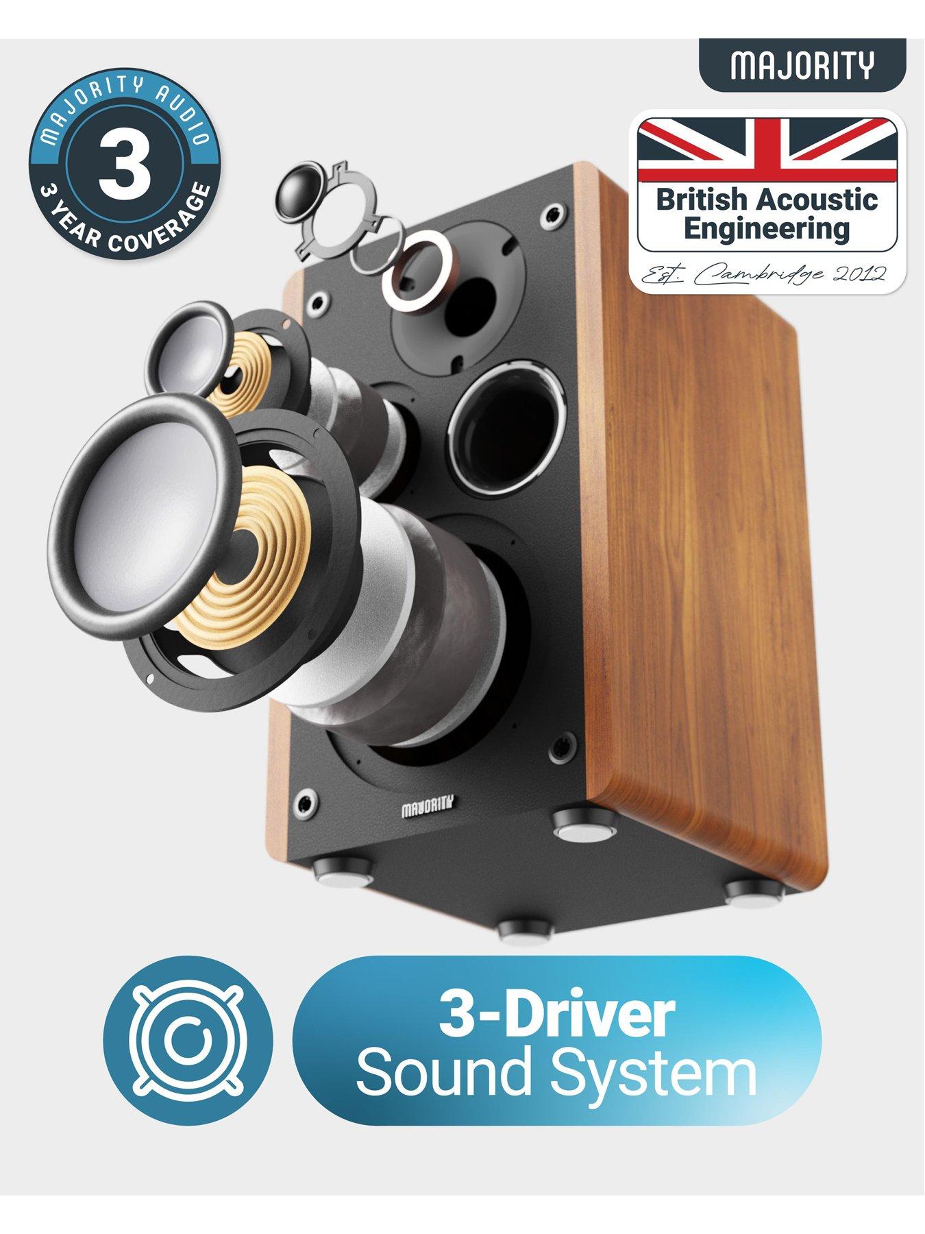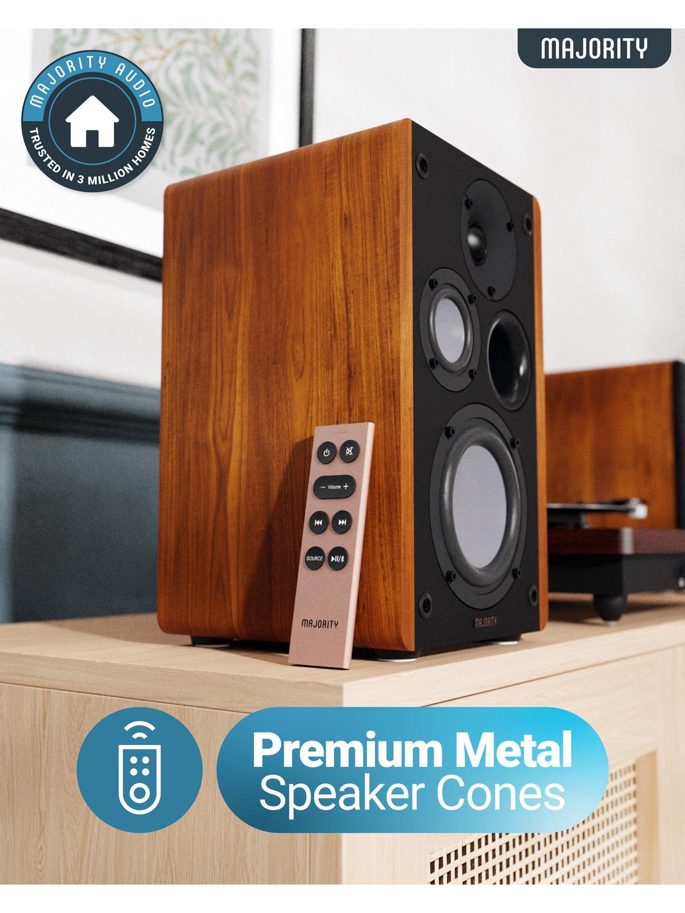 The Majority D100 speakers offer 100W of rich, detailed sound with Bluetooth 5.3, HDMI ARC, and phono inputs for turntables. Stylish and versatile, they're perfect for music, movies, and gaming, combining premium audio with easy controls at an affordable price.