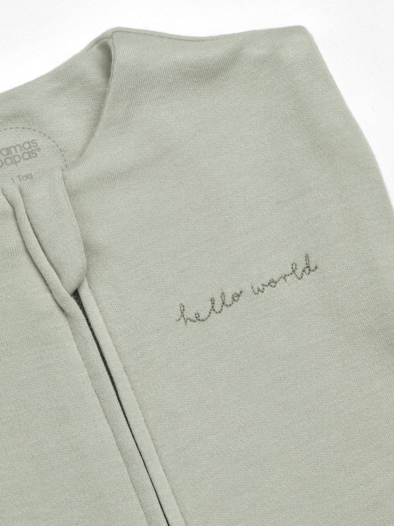 Mamas & Papas Swaddle - 0-3M - 1.0 Tog - SageSupport your baby's healthy sleep habits from the very start with Mamas & Papas' carefully crafted Dreampod Swaddle. Modelled on optimal sleep conditions for babies, this cocoon-style swaddle provides the comforting, secure feeling of the womb and helps reduce startle reflexes, promoting self-soothing and more restful sleep. Designed in soft sage green with âHello World' embroidery on the chest, it's made from gentle, breathable cotton and bamboo viscose fabric for a safe night's sleep and finished with a zip fastening for easy changing. Adjustable poppers mean baby's arms can be swaddled in or out and provide more freedom as they grow.