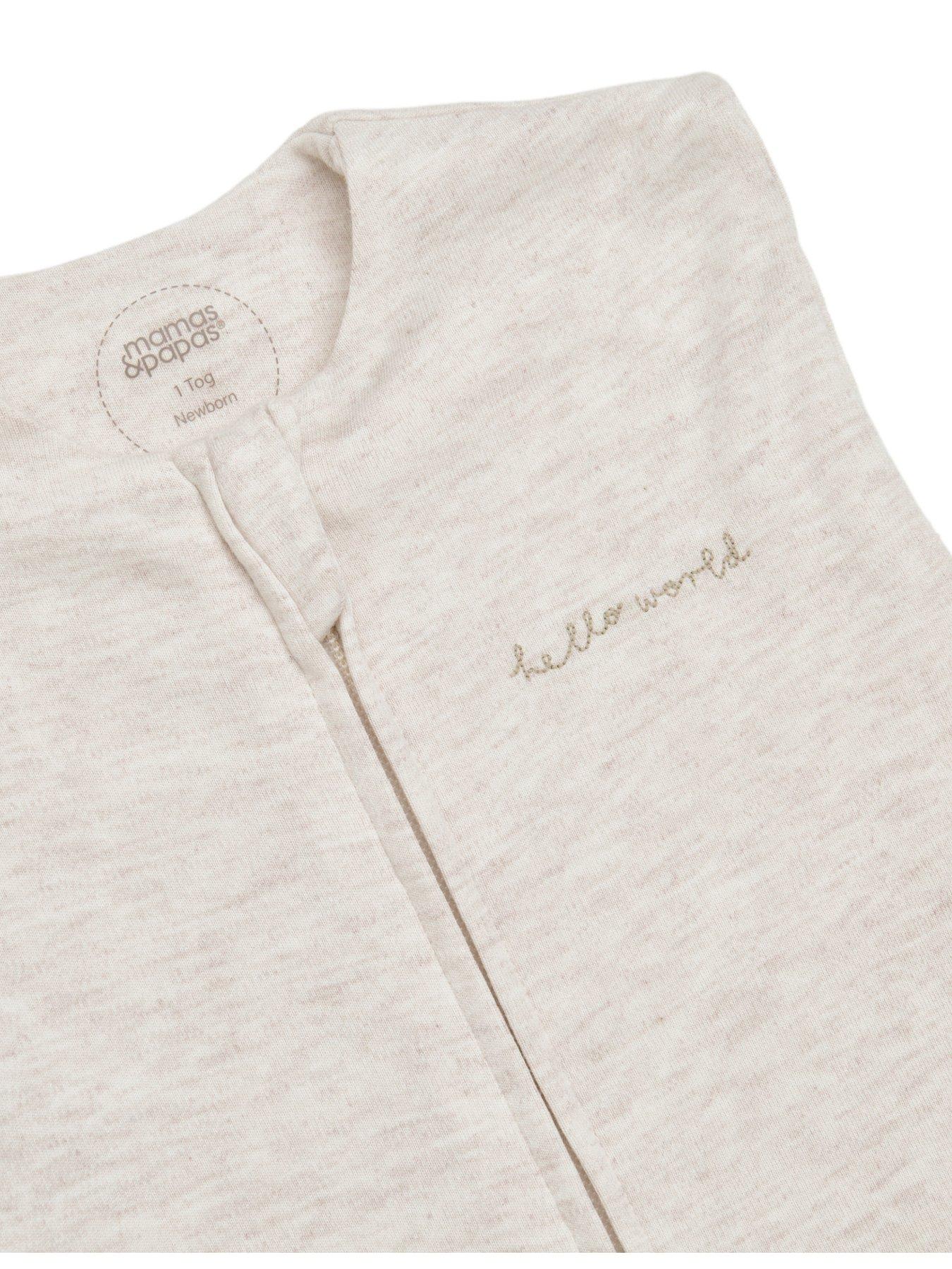 Mamas & Papas Swaddle - Newborn 1.0 Tog - OatSupport your baby's healthy sleep habits from the very start with Mamas & Papas' carefully crafted Dreampod Swaddle. Modelled on optimal sleep conditions for babies, this cocoon-style swaddle provides the comforting, secure feeling of the womb and helps reduce startle reflexes, promoting self-soothing and more restful sleep. Designed in a neutral oat shade with âHello World' embroidery on the chest, it's made from soft, breathable fabric for a safe night's sleep and finished with a zip fastening for easy changing. Adjustable poppers mean baby's arms can be swaddled in or out and provide more freedom as they grow.