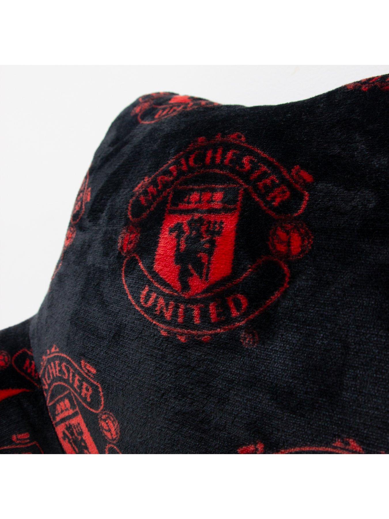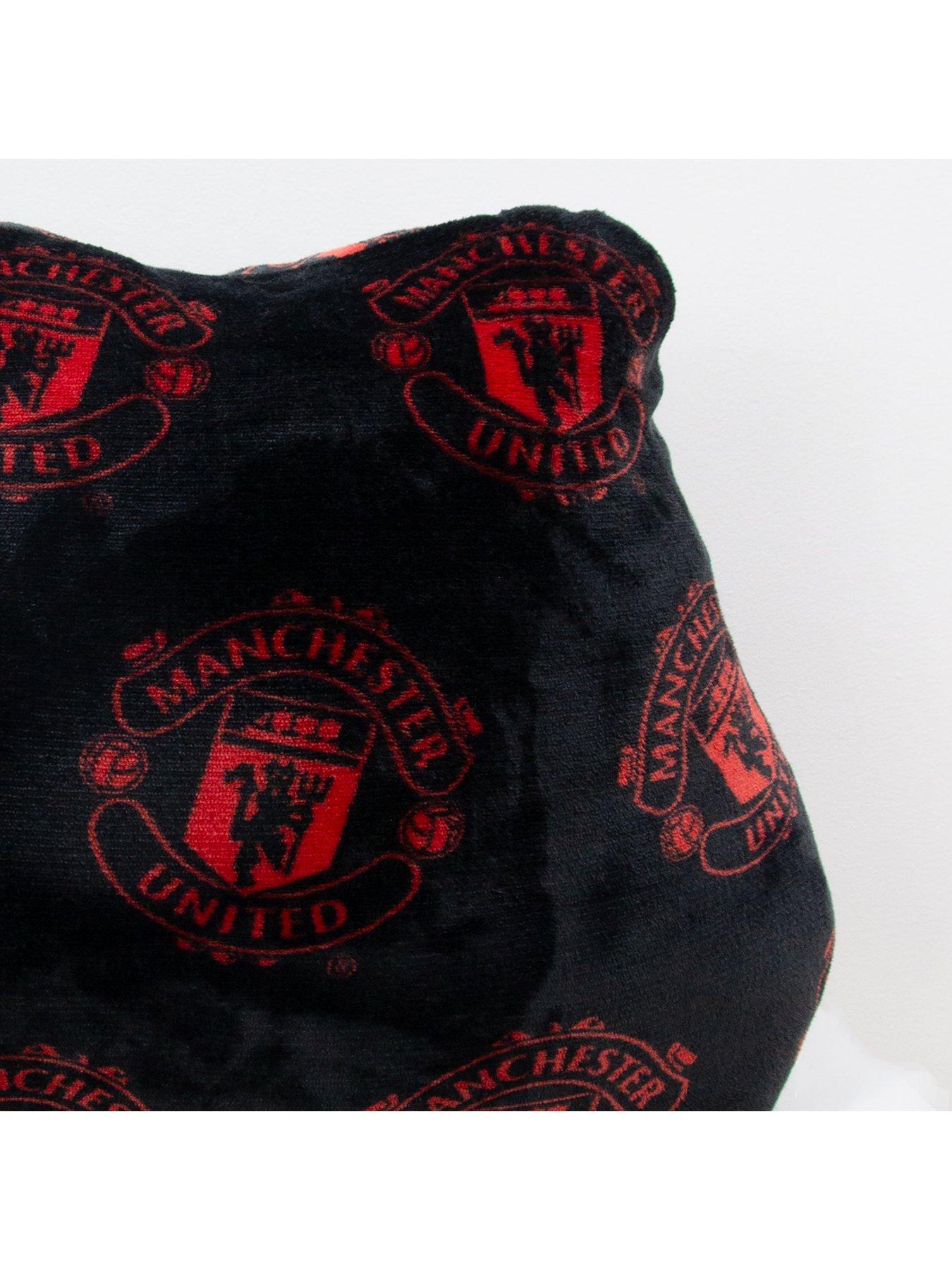 Manchester United Man United Applause CushionPerfect for Man United fans young and old, this officially licensed Manchester United Football Club cuddle cushion makes for a fantastic gift. Inspired by the clubs' colours, the ultra comfy cuddle cushion features the iconic Man United crest in red on a black background that runs on to the back of the cushion. The cuddle cushion features a high back rest, offering support when watching the match or gaming on the sofa, or improving posture when reading or working in bed. The MUFC cuddle cushion has chair-style arm rests to hold you or your child in place, and gives a comforting cuddle. The cushion can be turned around and used from the front, offering comfort, or supportive padding when concentrating during a game. Measuring 39cm x 70cm x 45cm (HxWxD), and filled with 100% polyester, the Manchester United football club cuddle cushion is finished with a strokably soft fleece finish. This wrap-around cushion is easy to wipe clean with a damp cloth, just in case of spills or wear and tear and goes great with the rest of our official Man United range