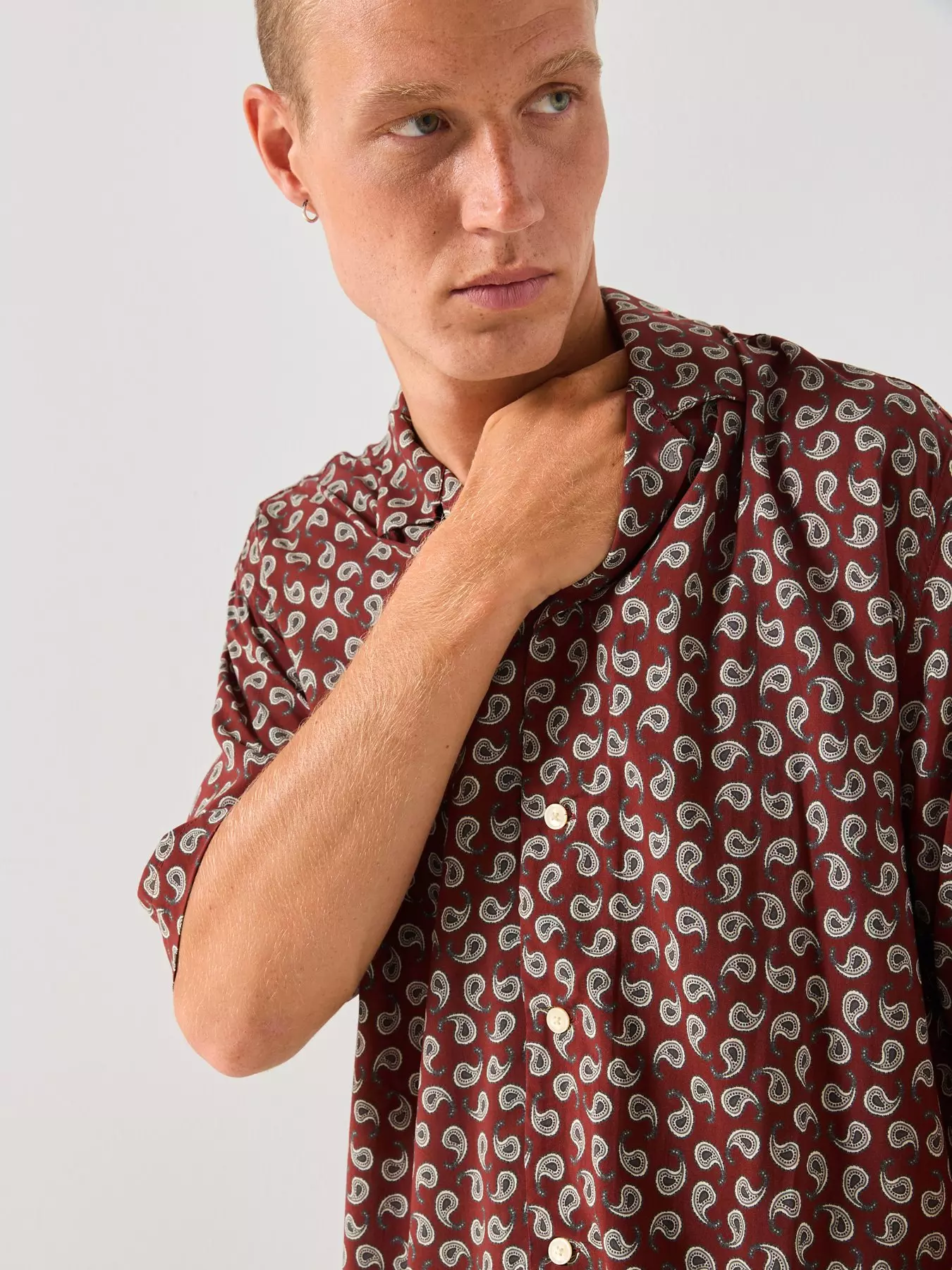 MangoChill Short Sleeve Printed Shirt - Dark Red