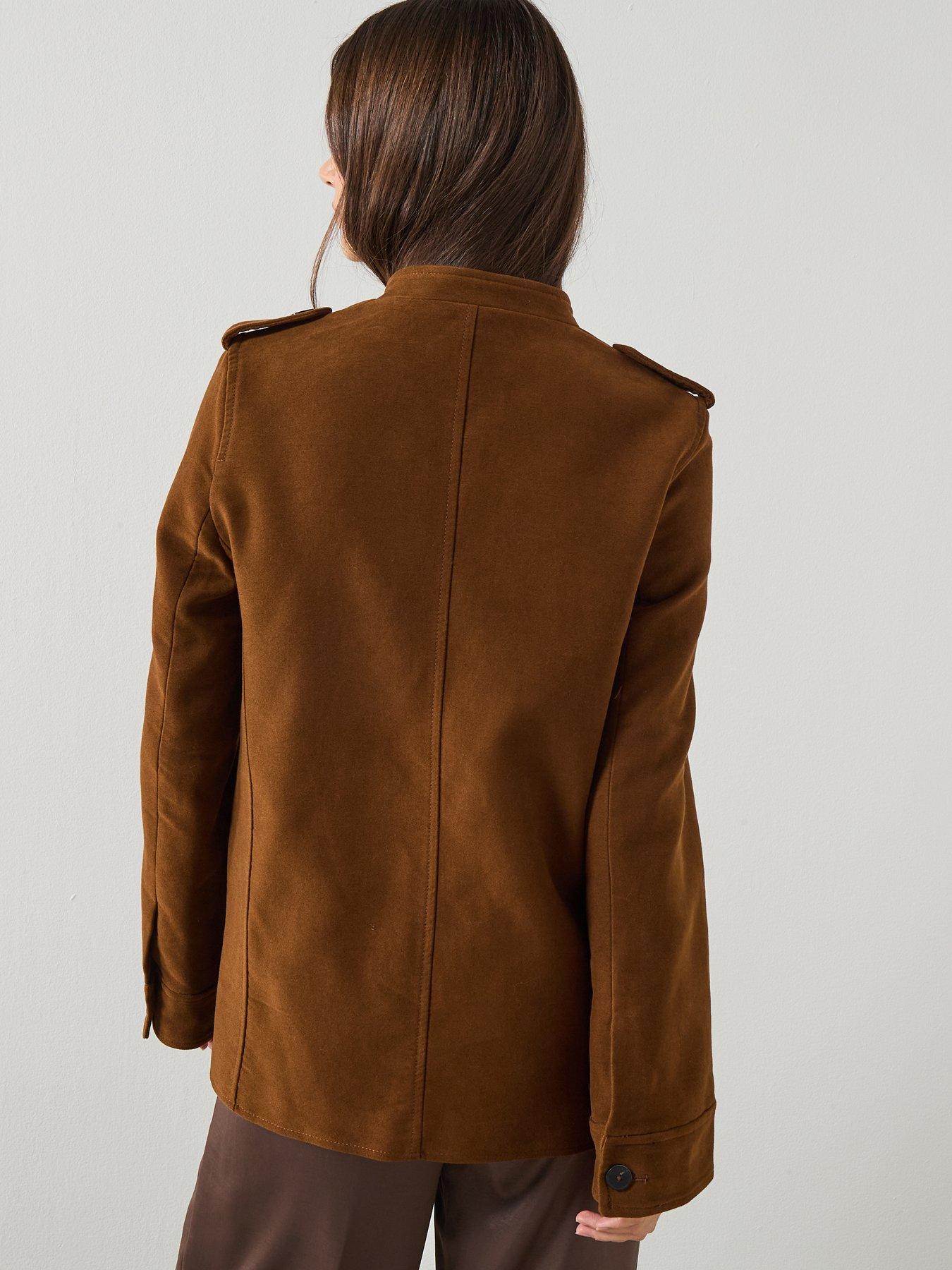 Mango Collarless Jacket With Pockets - Tabacco