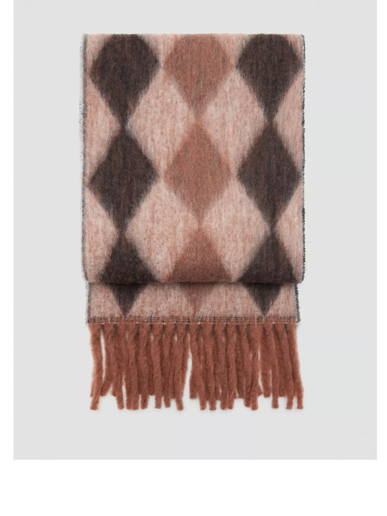 MangoDiamond Pattern Scarf With Fringes - Brown