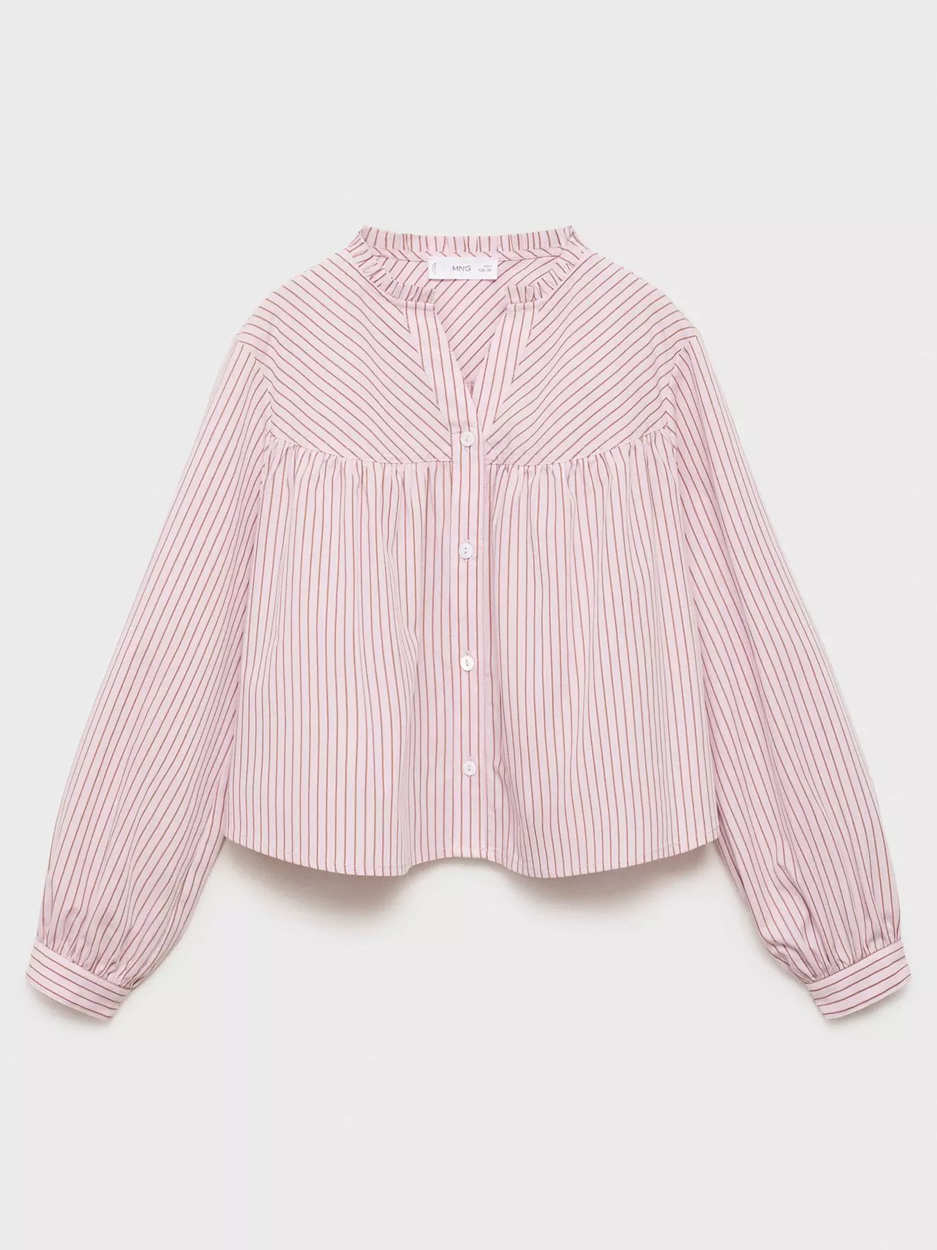 - Girls Long Sleeve Collarless Stripe Shirt by Mango