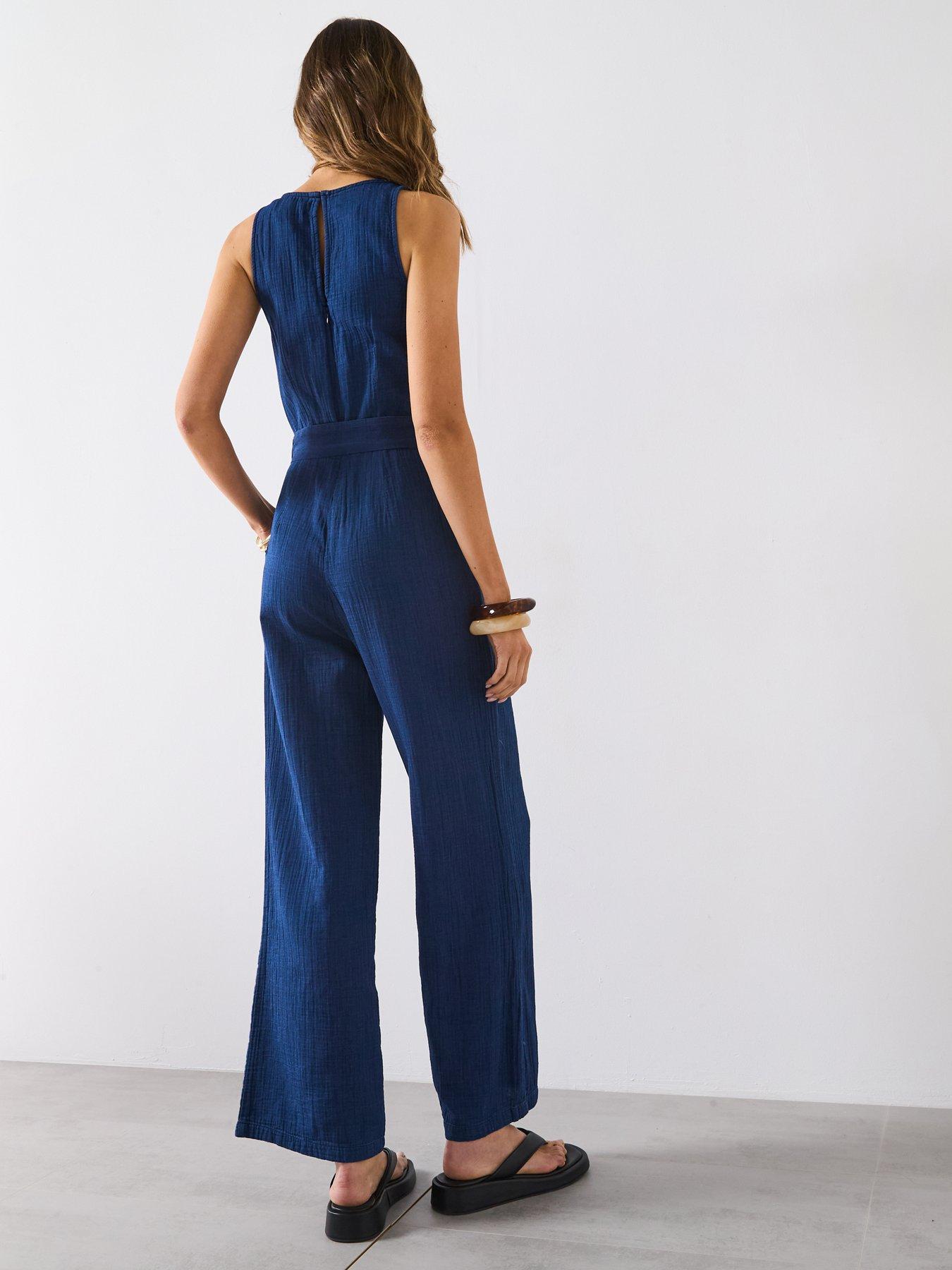 Mango Long Soft Denim Jumpsuit With Belt