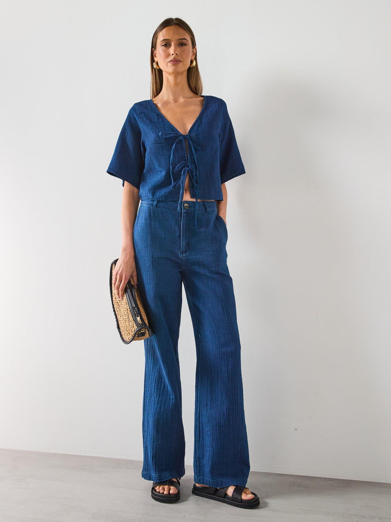 • Soft Denim Top With Tie Closure by Mango