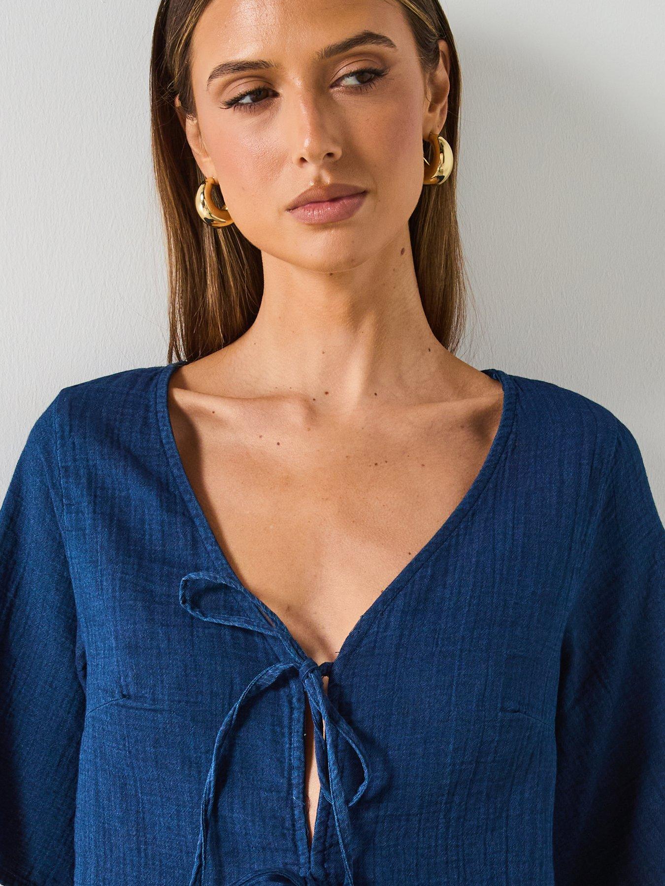 Mango Soft Denim Top With Tie Closure