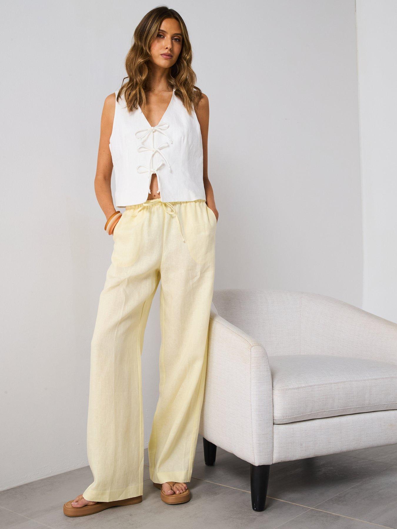 • Straight Linen Pants With Bow by Mango