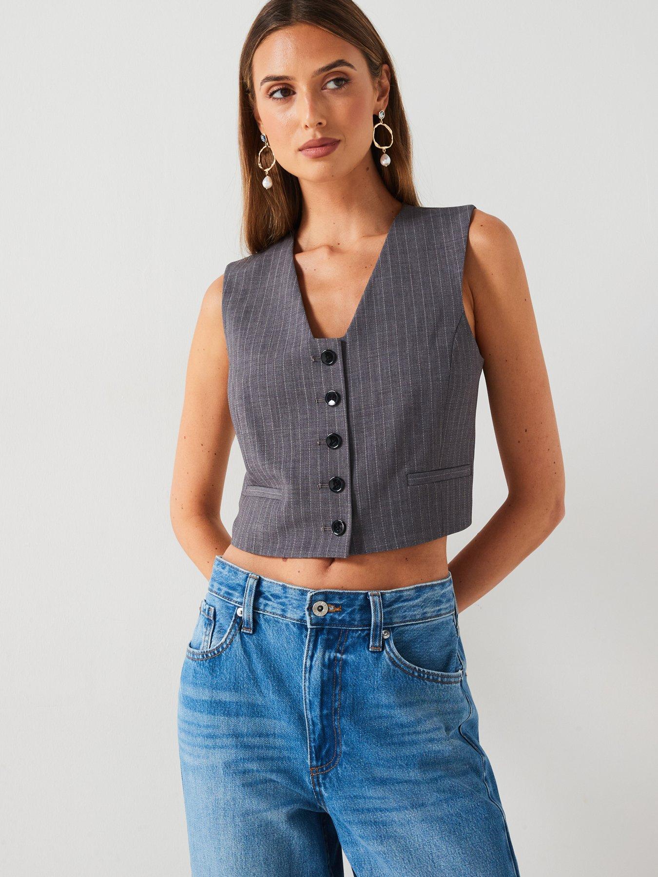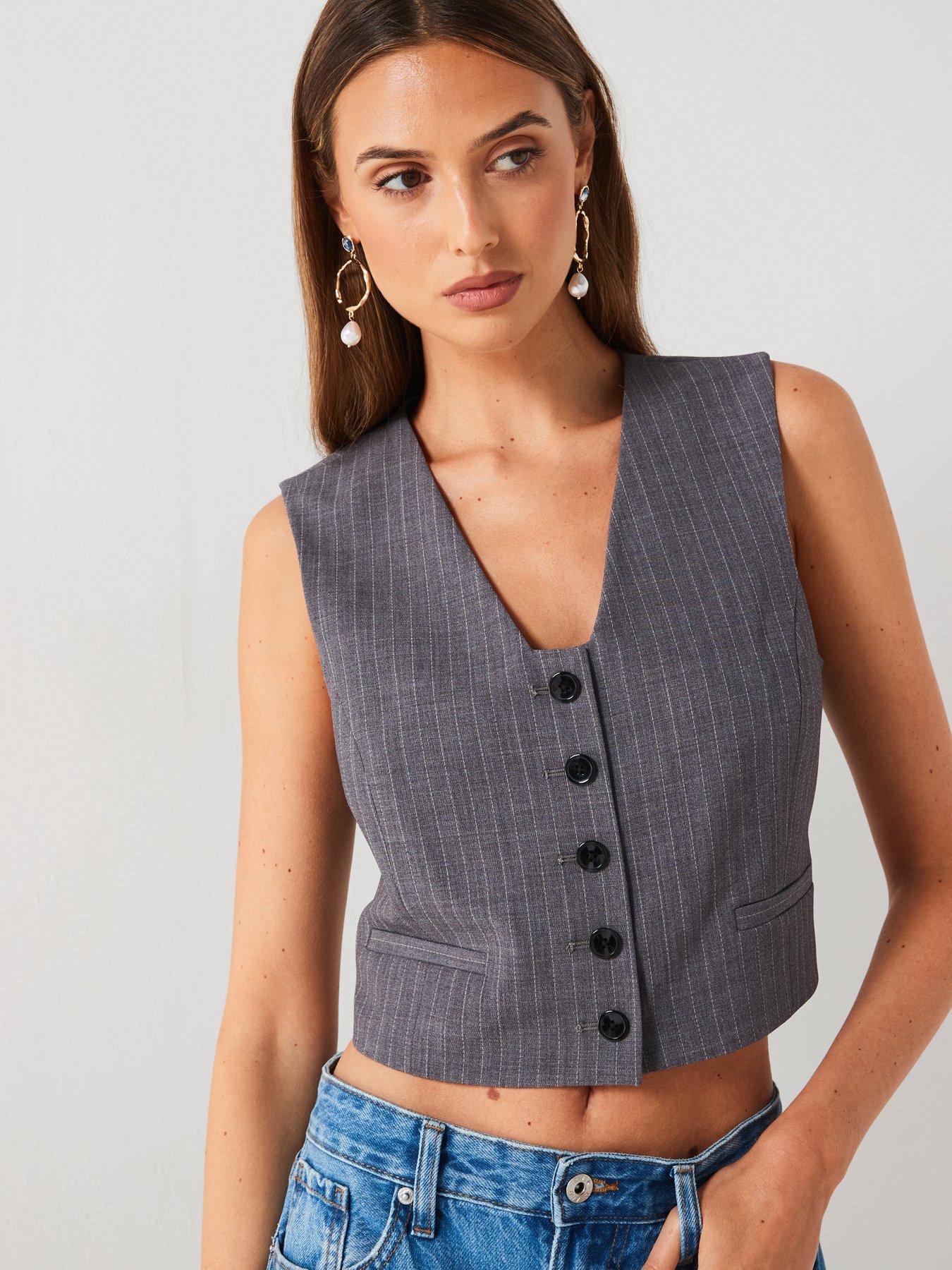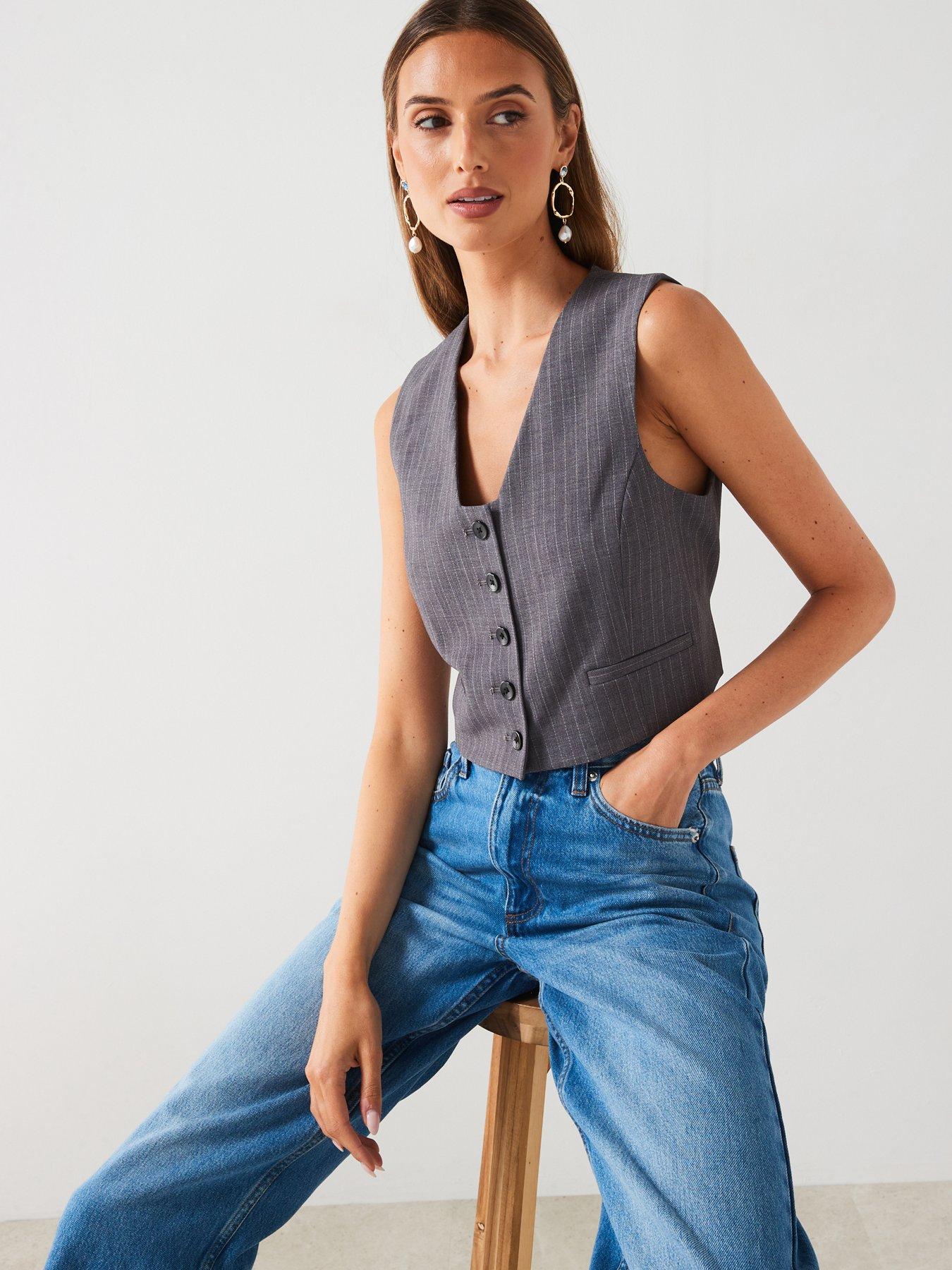Mango Stripped Button Waistcoat