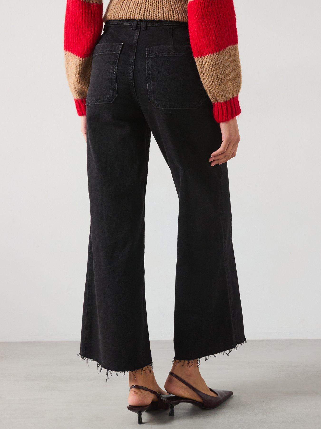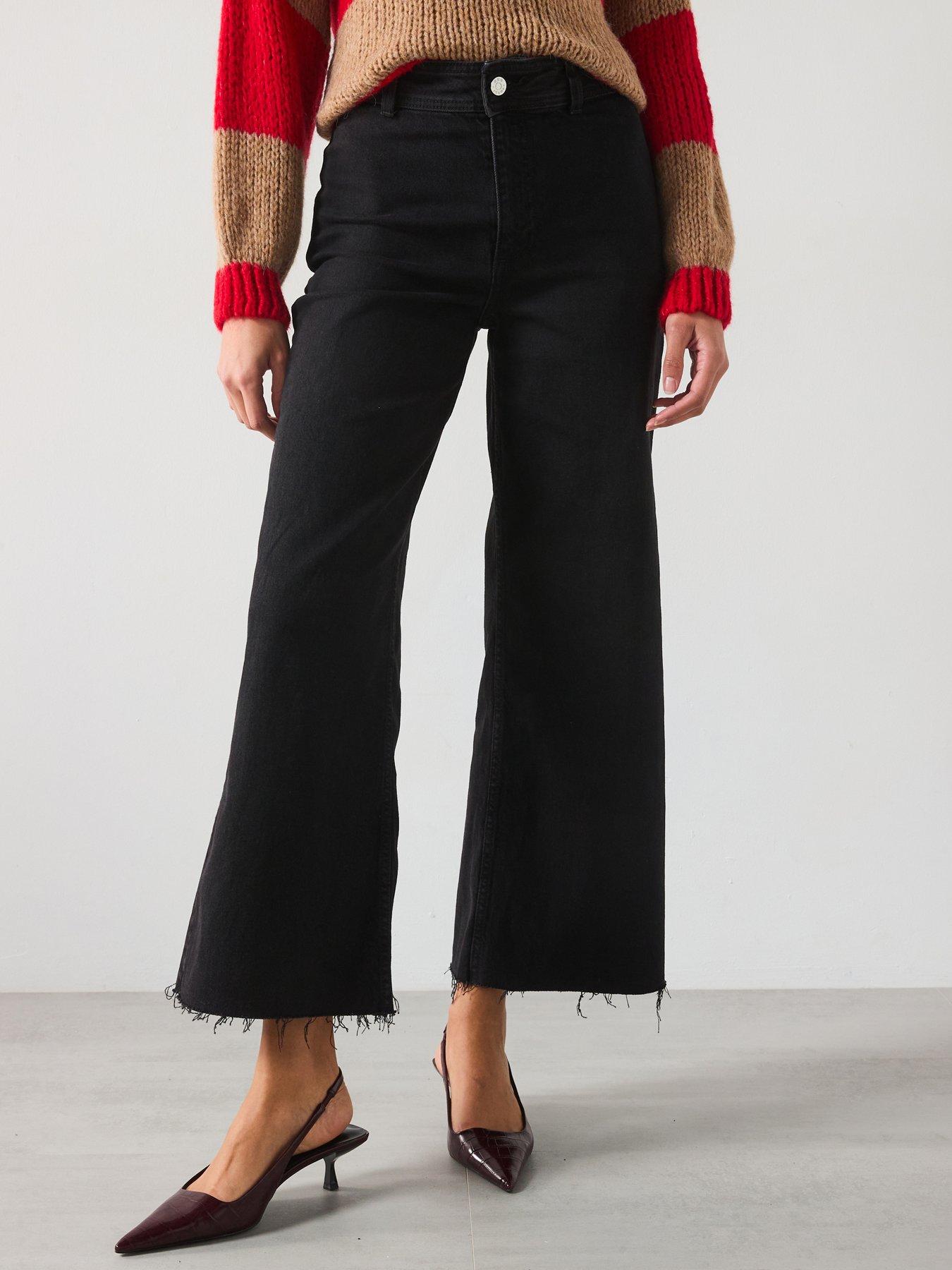 Mango Wide Leg Culotte Jean - Black