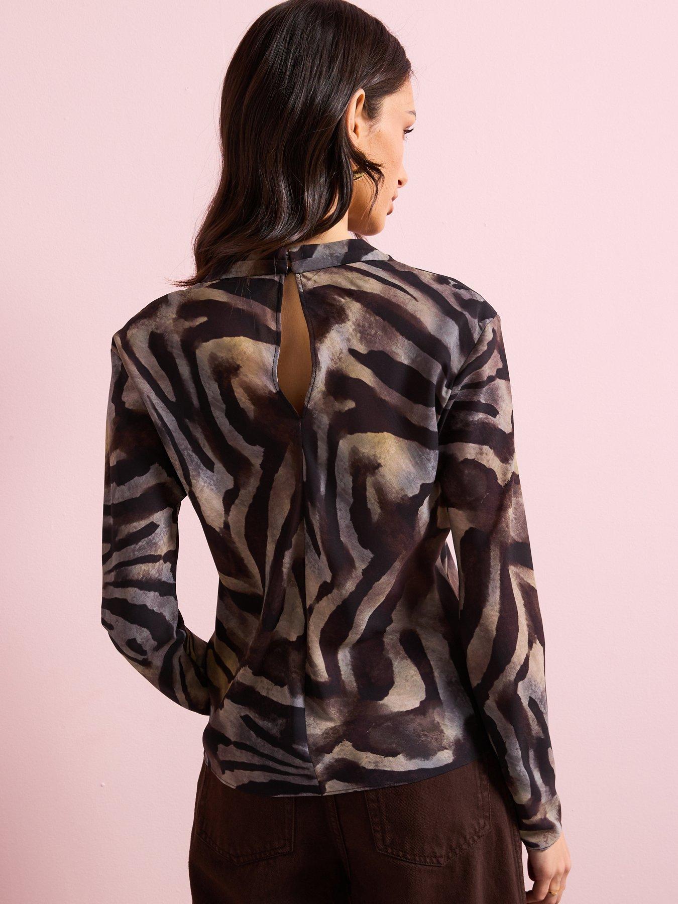 • Embrace your wild side this season with this zebra print blouse, a statement-making piece that's perfect for day to evening styling