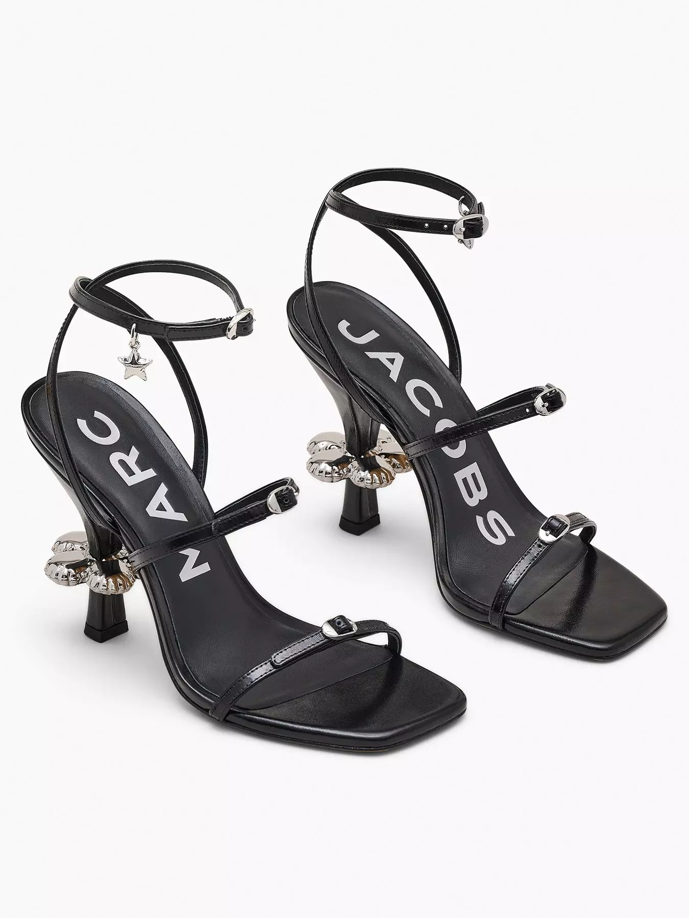 - Smooth leather heel with a sleek ankle strap finished with a dangling charm detail