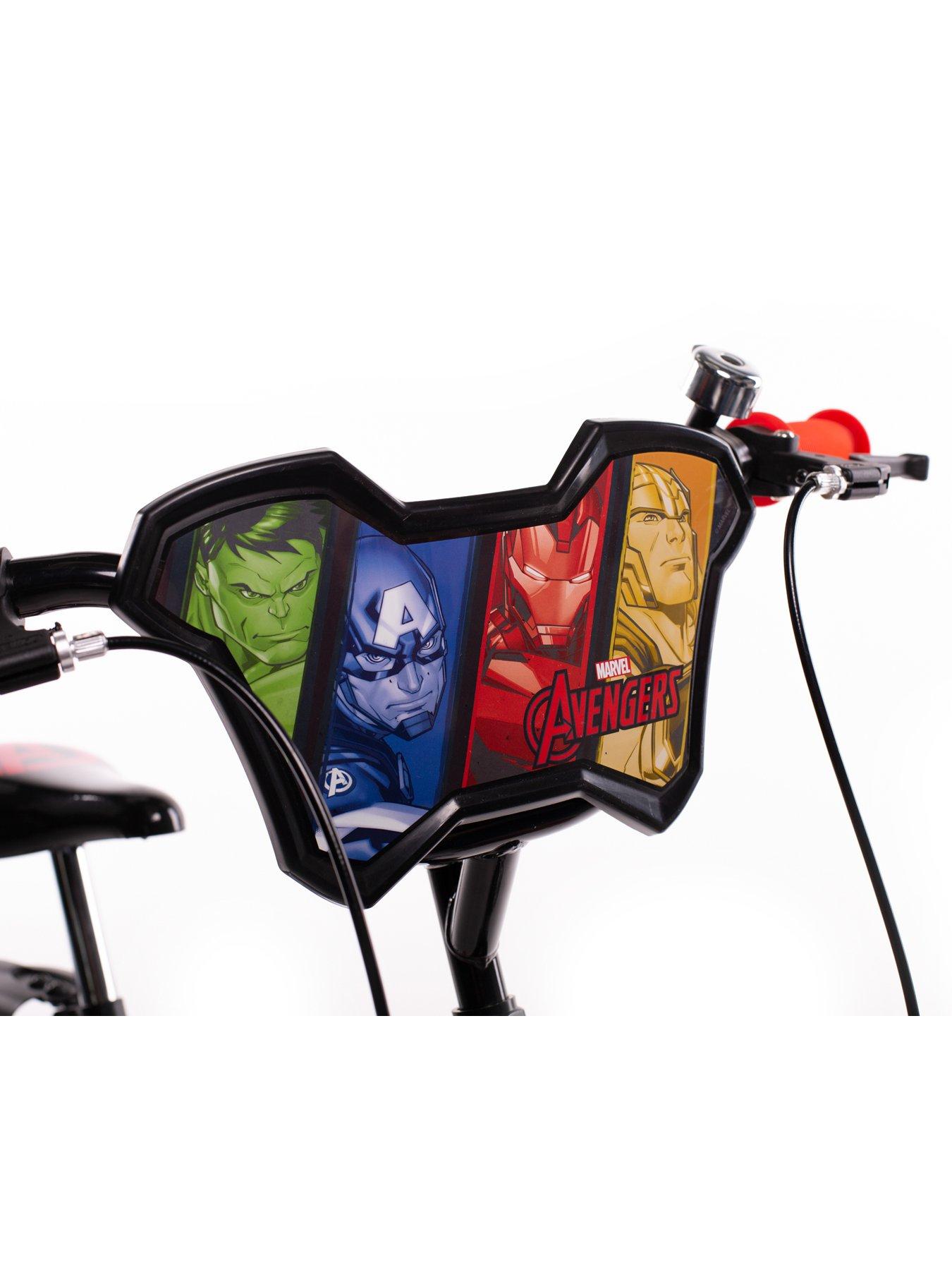 Marvel 14" Avengers Bike - the perfect set of wheels for any budding superhero!Aspiring Avengers can take to the streets like their friendly neighbourhood Spider-Man, thanks to this brilliant kids’ bike.This stylish set of wheels is made for beginner riders and is the perfect way for children to get to grips with cycling. Training wheels are included to help your little Marvel learn to balance, while building confidence. They can pedal, cruise, and stop easily with easy-to-use responsive brakes. With 14-inch knobby tyres, a steel frame, and padded seat, this bike goes anywhere your kid can go, providing reliability and comfort. It is ideal for children aged 4 to 6 years old, and the seat height can be adjusted to fit your growing child - helping to ensure that your child can enjoy their first bike for years to come.