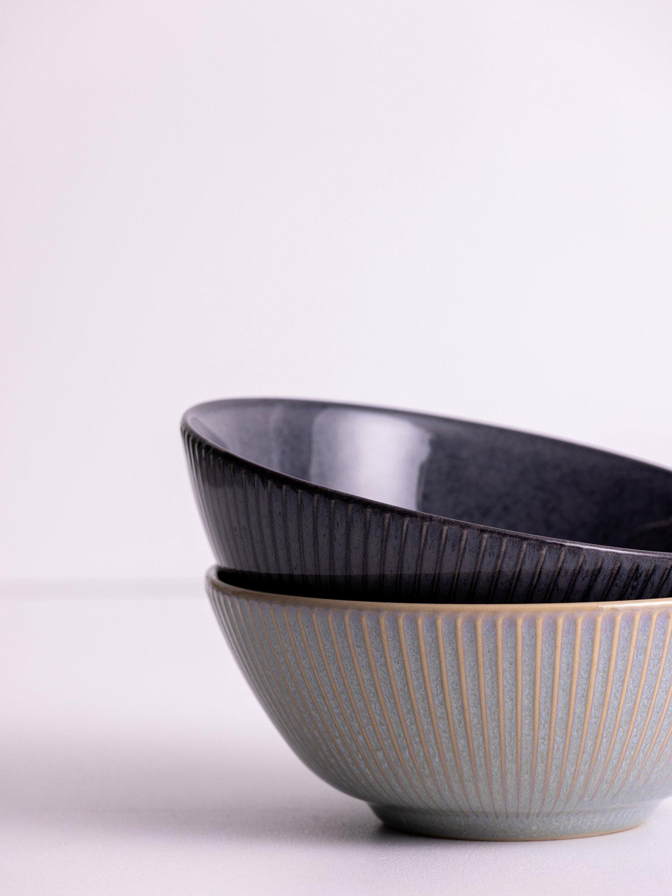In a gorgeous grey colourway, each piece has been embossed with a linear pattern around the outer edge before being finished with a gorgeous reactive glaze. Catching the eye from any angle, this unique visual gives the set a unique artisan feel, along with slight differences in their colour and pattern. The subtle gradient palettes, meanwhile, elevate the look beautifully.
