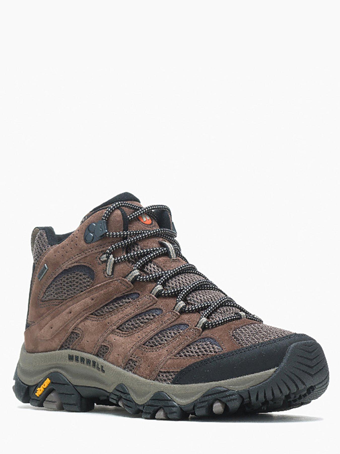 Merrell Mens Moab Mid Goretex Hiking Boots - BrownGORE-TEX®Ultra Gore-Tex® membrane locks out water as you trek through puddles and showers, yet breathable technology lets sweat escape, meaning no clammy feet. Bellows foam tongue keeps out moisture and debris, further protecting the feet. Leaving you ready to enjoy your walk! Vibram® Sole Striking a balance between durability and traction, the Moab’s Vibram® sole ensures you’re armed with high levels of grip and flexibility for all kinds of activities from snow sports to mountain biking. Premium Cushioning Merrell Air Cushion in the heel absorbs shock and adds stability, whilst removeable Kinetic Fit™ ADVANCED insole has reinforced cushioning and arch support to keep your foundation strong and comfortable.