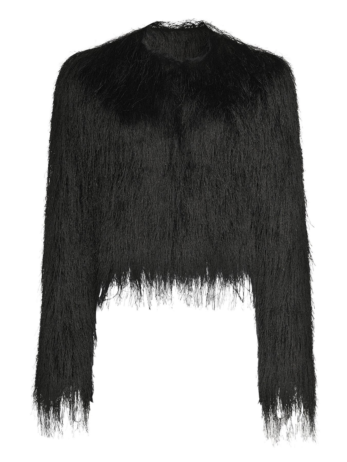 Michelle Keegan Fringe Cropped Jacket - Black
