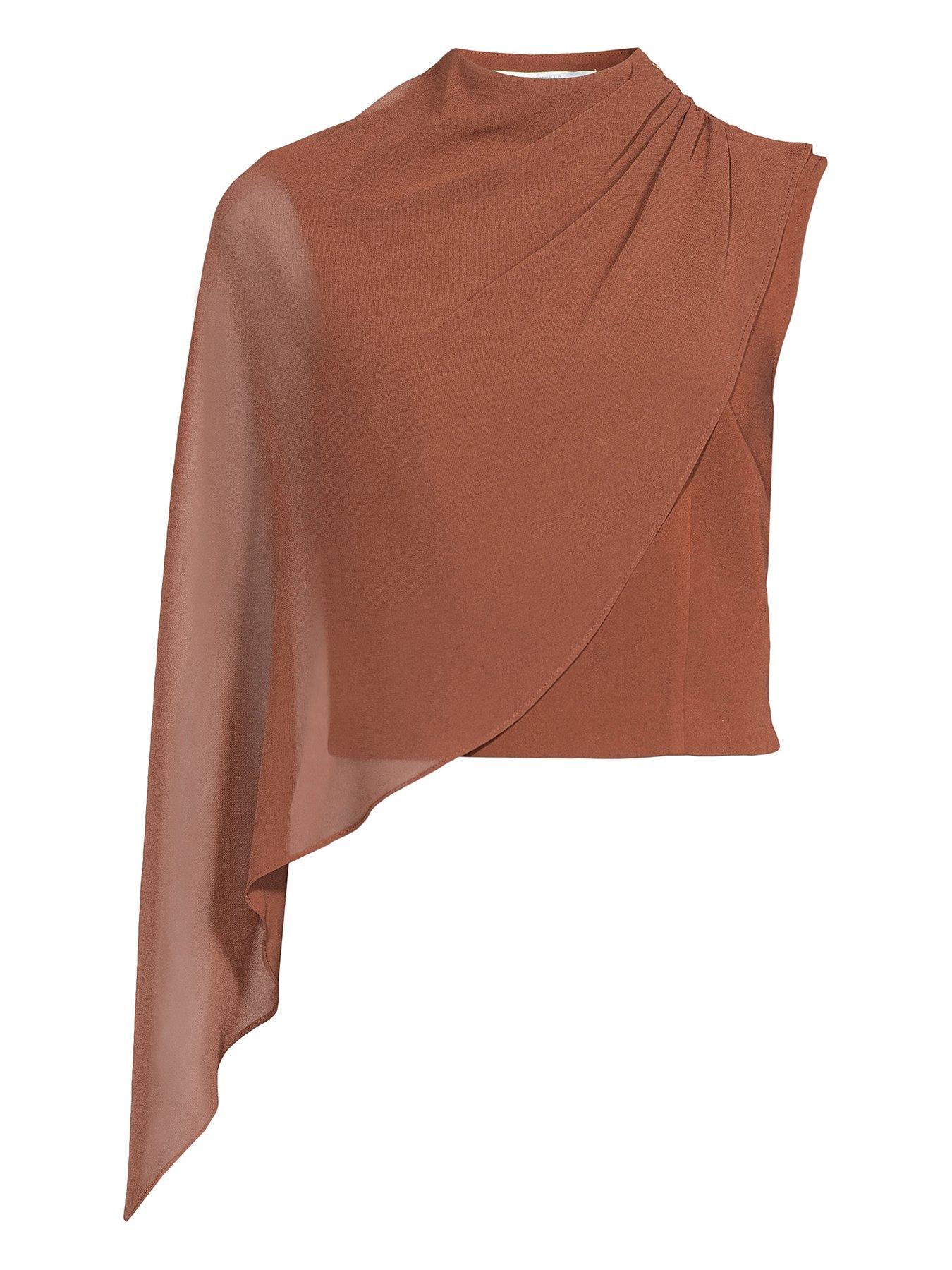 Michelle Keegan One Shoulder Cape Top - Brown
