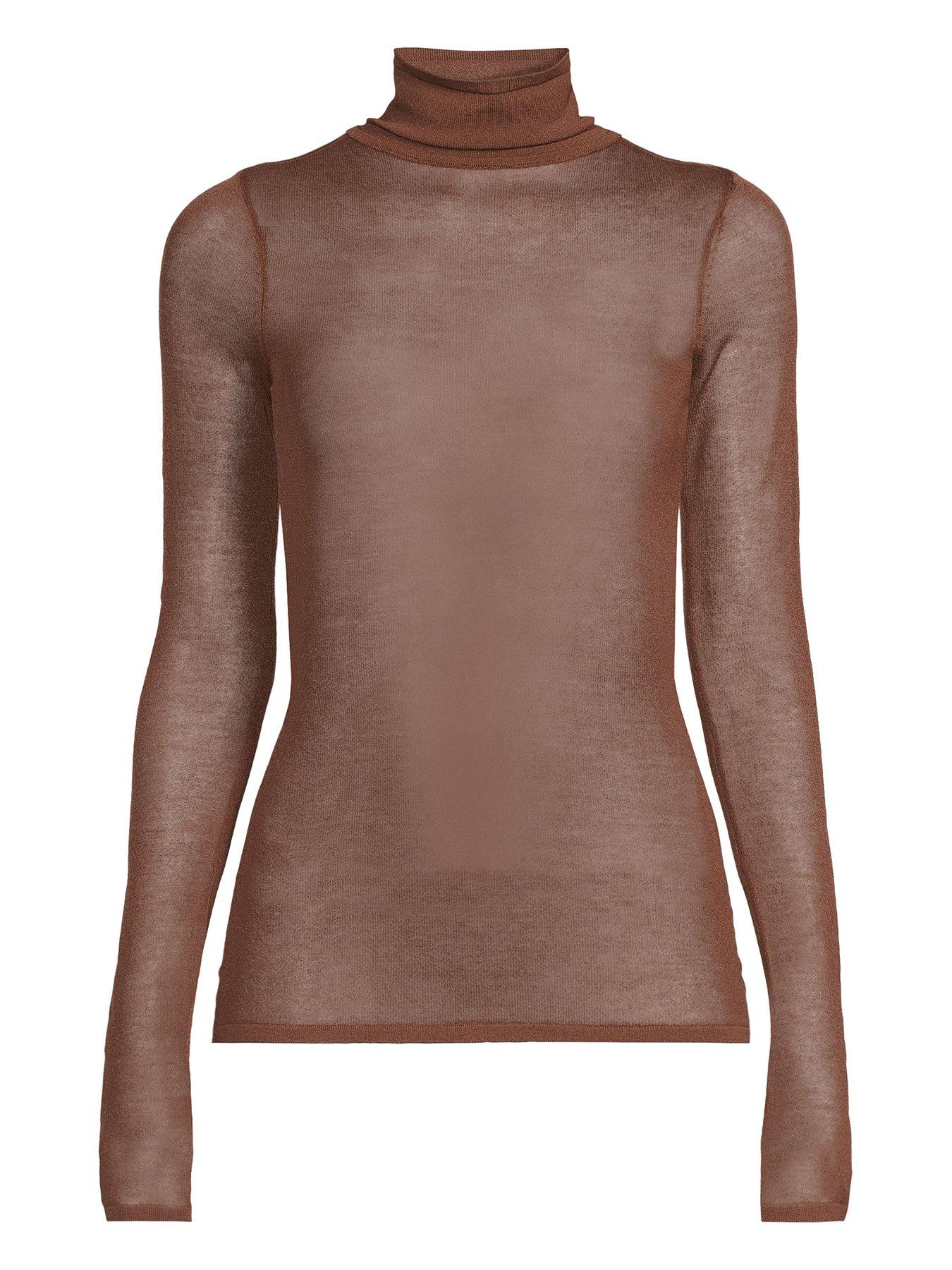 Michelle Keegan Sheer Roll Neck Jumper - Brown