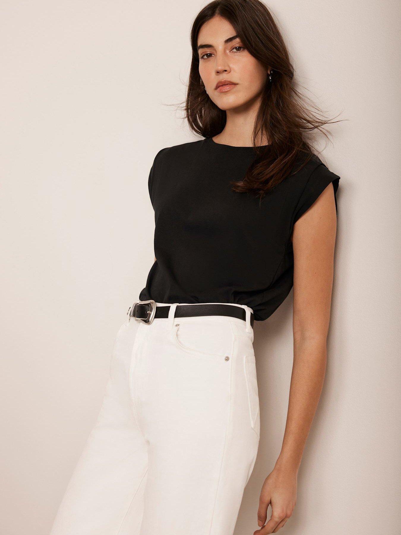 Mint Velvet Black Cotton Extended T-shirtWoven with cotton for added softness and breathability, this white t-shirt is a wardrobe essential.