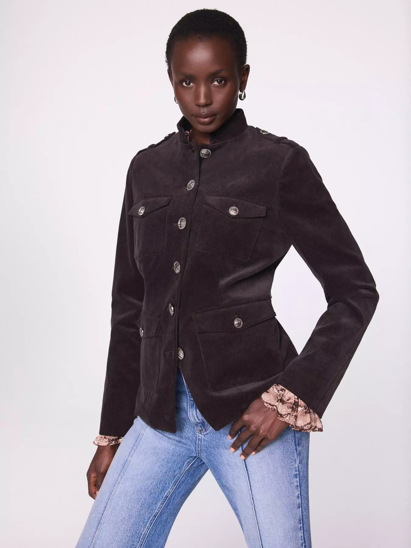 Mint VelvetChocolate Cord Military Jacket - Brown