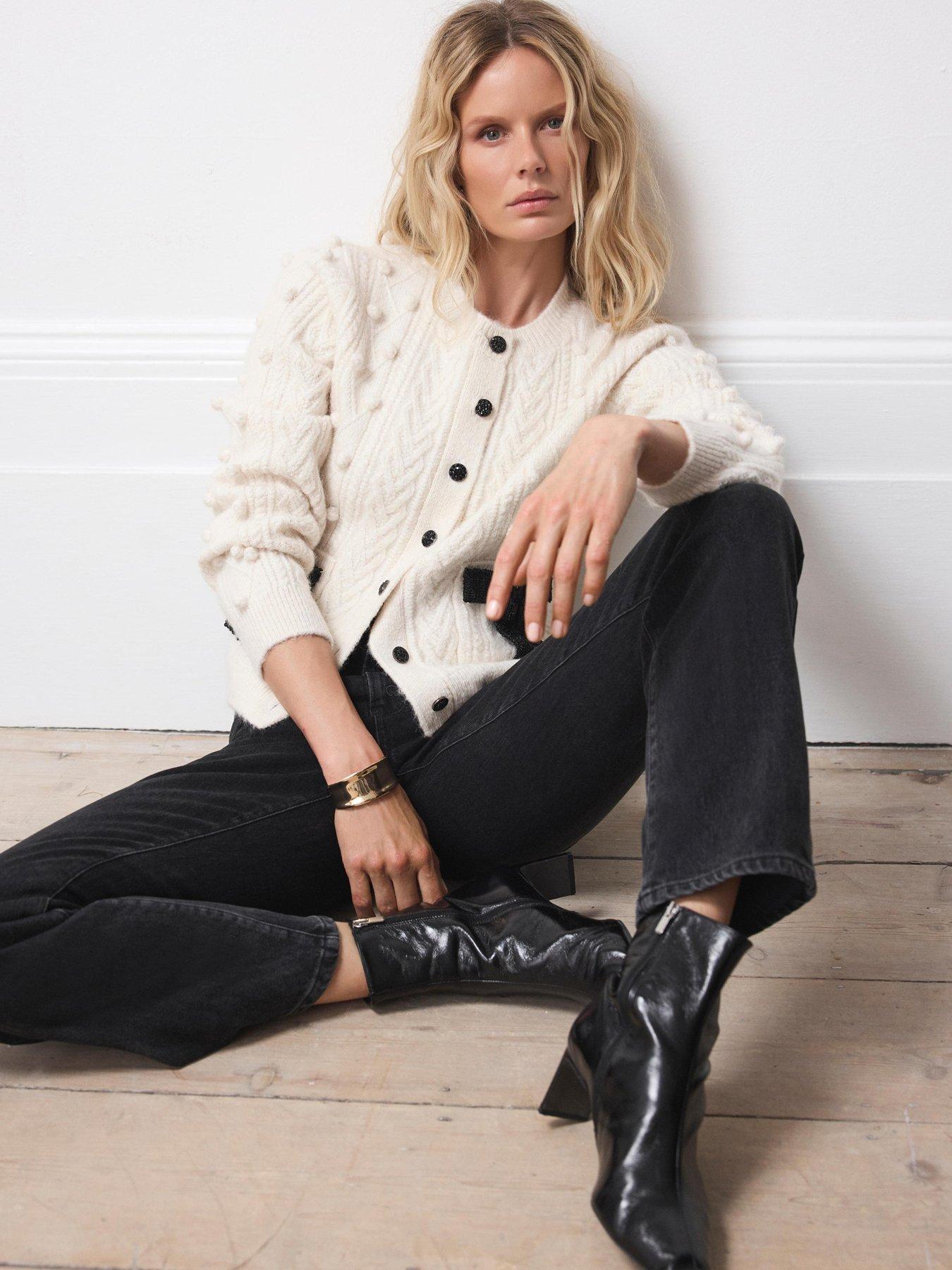 Mint Velvet Ivory Bobble Bow Cardigan