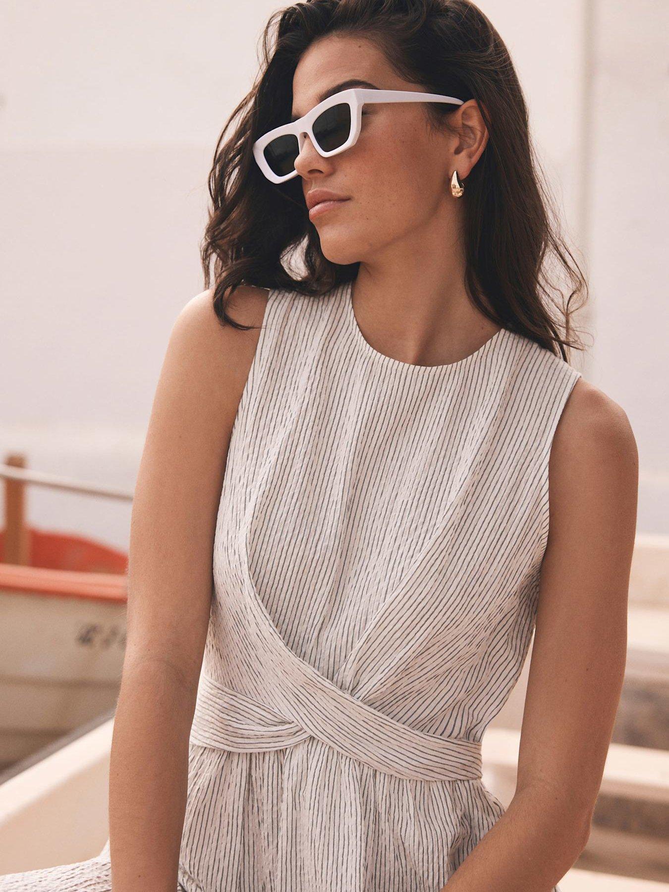 Mint Velvet Neutral Striped Midi DressSize & Fit