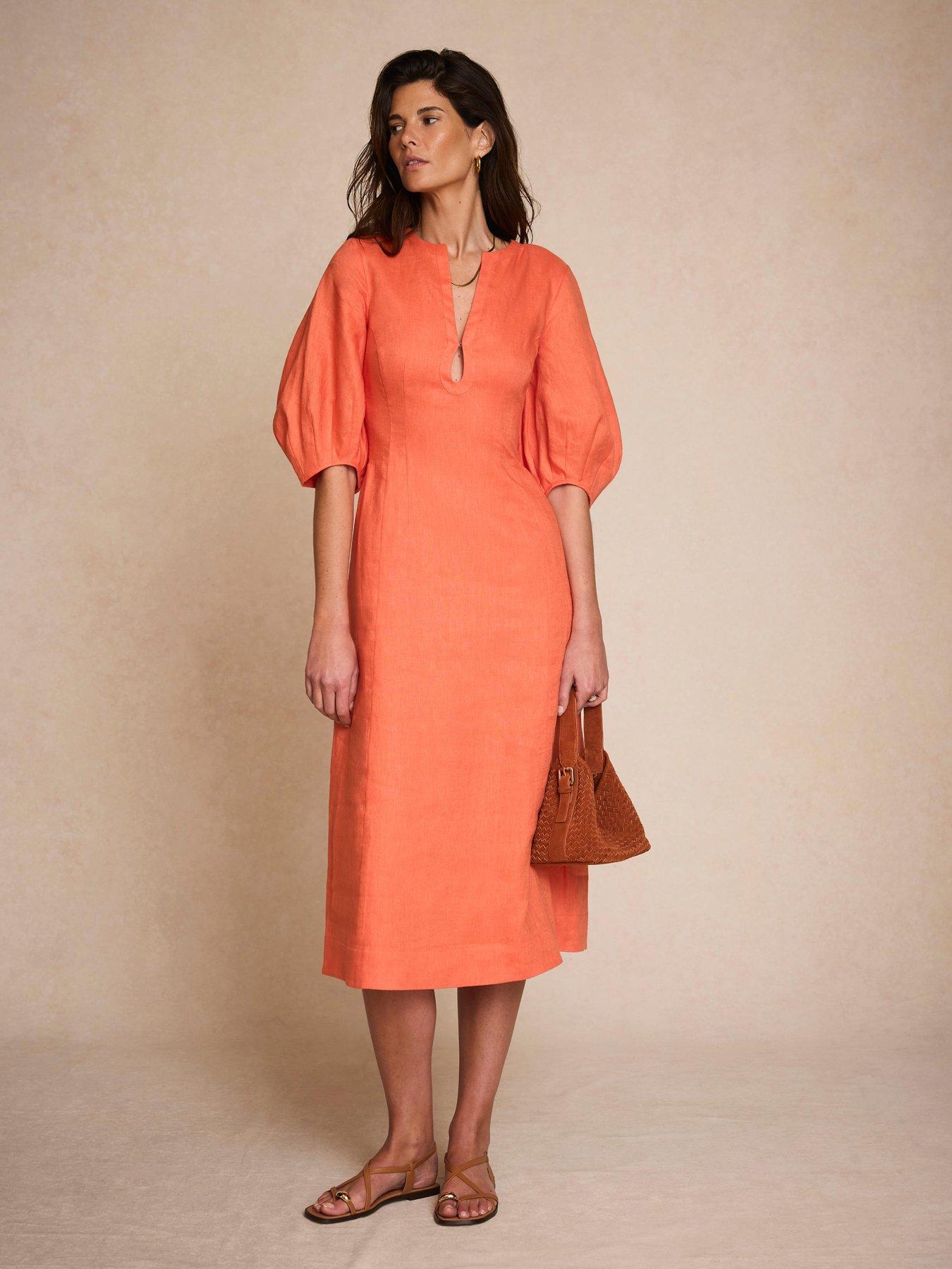 Mint Velvet Orange Linen Midi Dress
