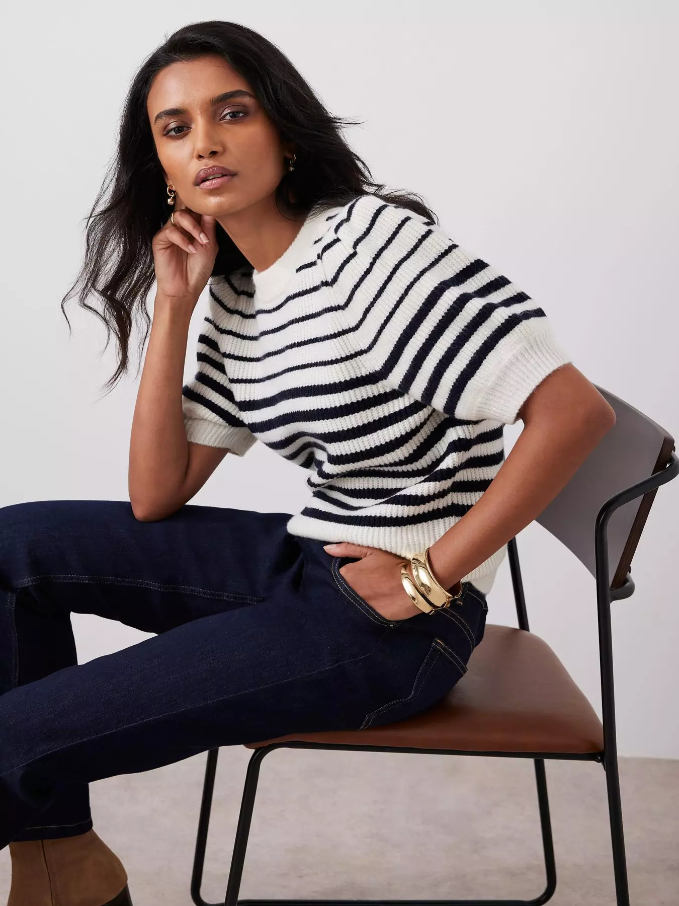 Mint Velvet Stripe Puff Sleeve Knit Top