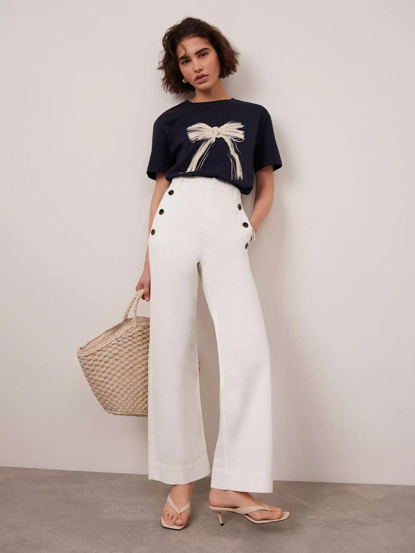 Mint VelvetWhite Button Detail Cropped Trousers - Ivory