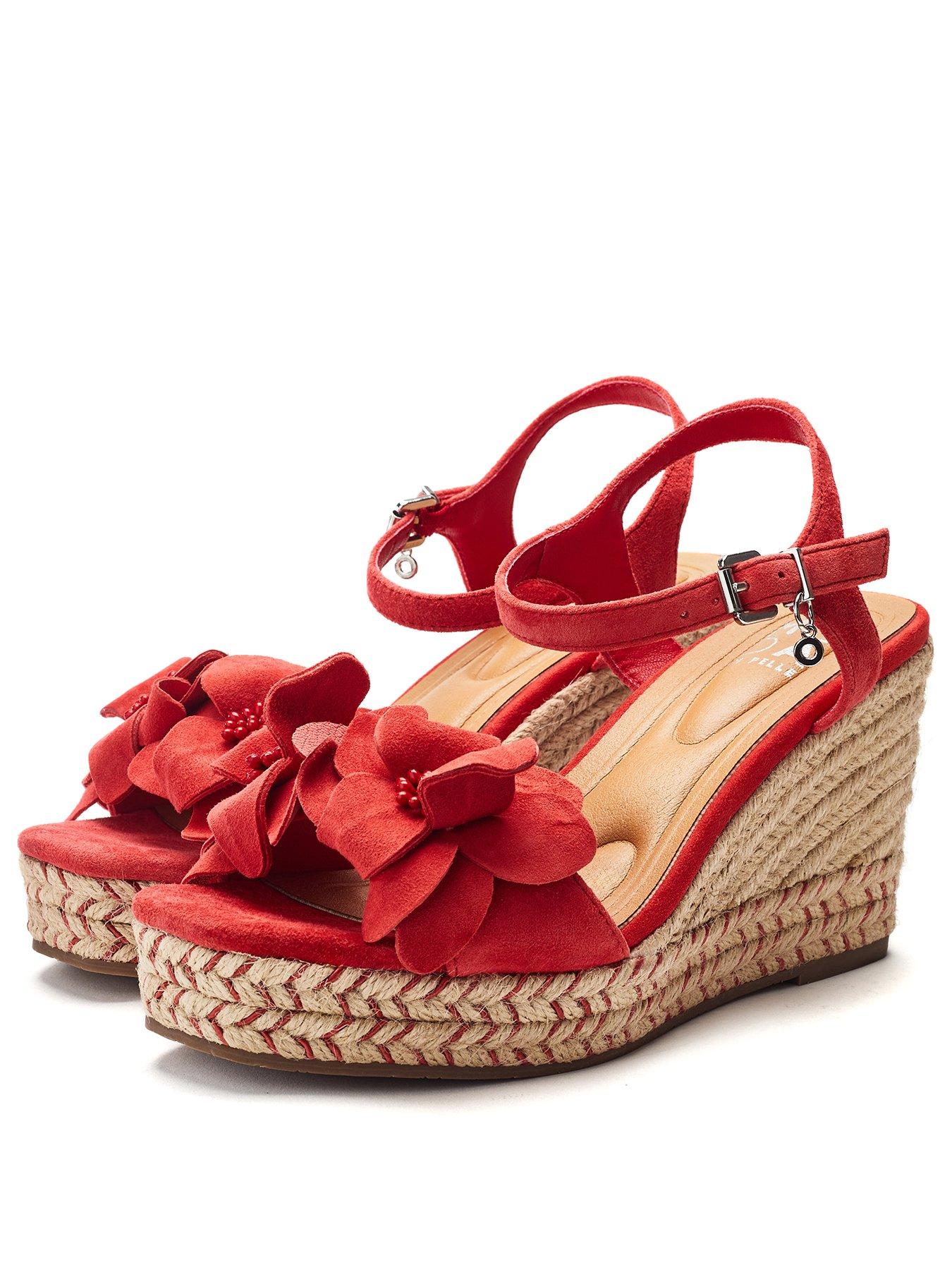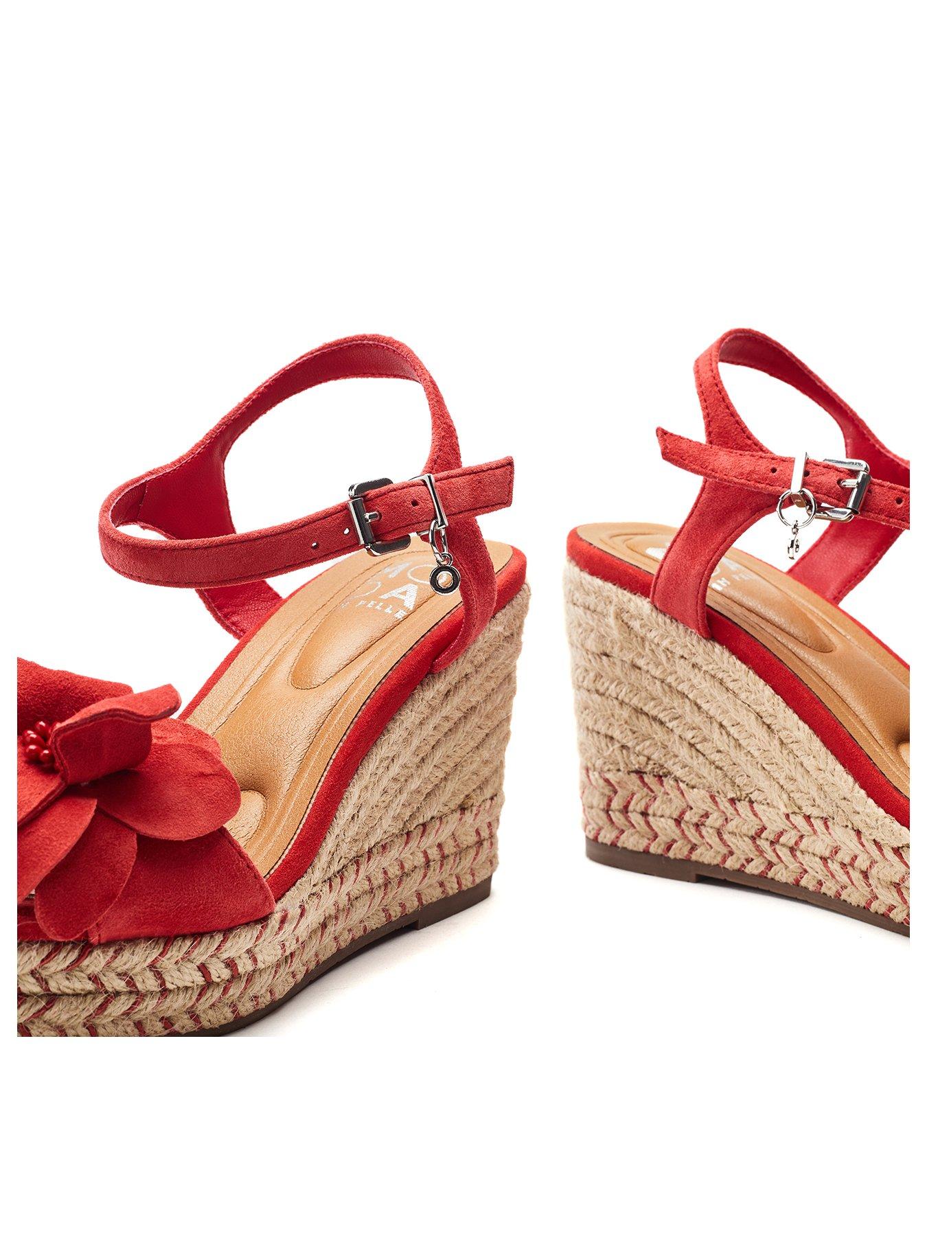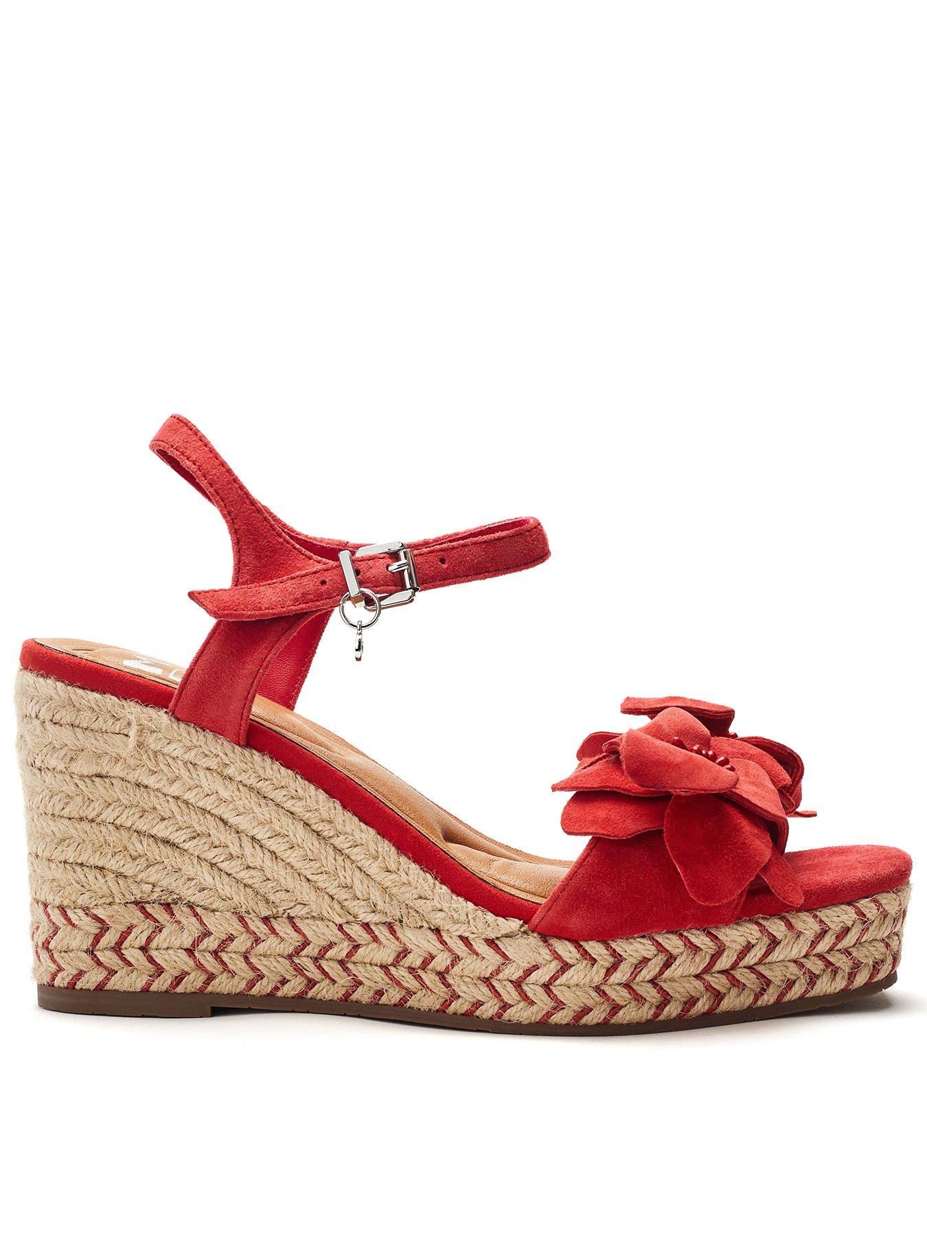 Moda In Pelle Mistee Red Suede Flower Detail WedgeMake an impression in Mistee. This floral embellished sandal features a rope covered wedge heel for the perfect summer look. The wedge heel adds height whilst ensuring stability and comfort for all-day wear. The ankle strap provides an adjustable and comf