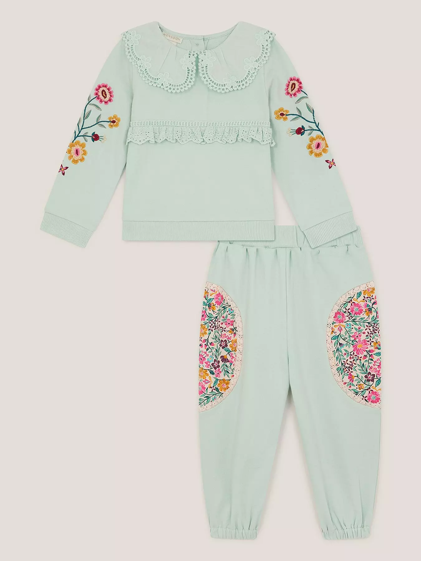 Cute and cosy. Featuring embroidered blooms and a lace collar, this sweatshirt is a lovely addition to their collection. The matching joggers make for versatile co-ord that can be worn on days out, play dates and staycations.- Material Content: Top: Cotton 100%