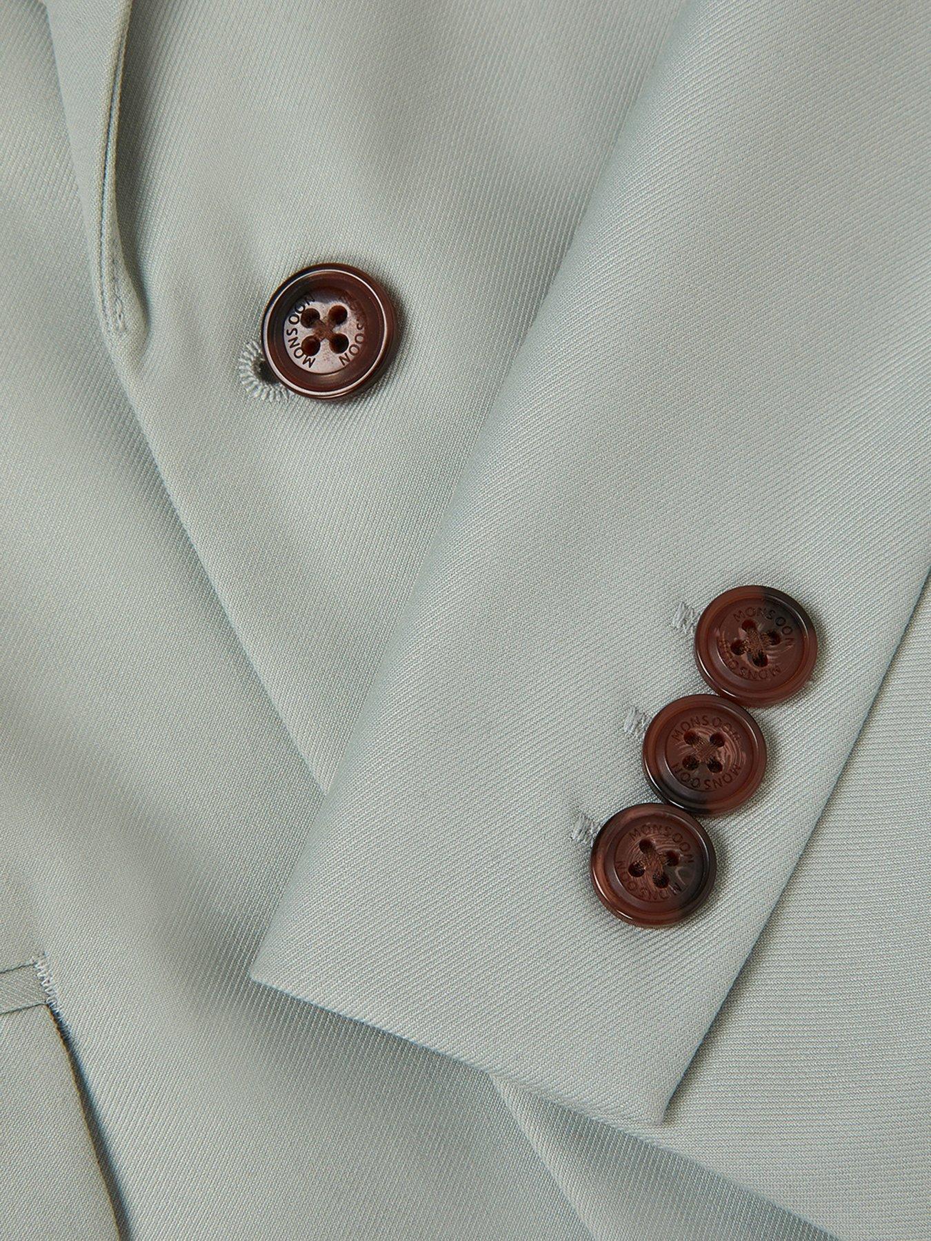 Monsoon Boys Freddie Blazer - Light GreenLooking sharp. Complete their smart ensemble with this subtle sage blazer. Designed with a decorative pocket square, buttons at the cuff and handy pockets, it's a piece they'll want for every special occasion.