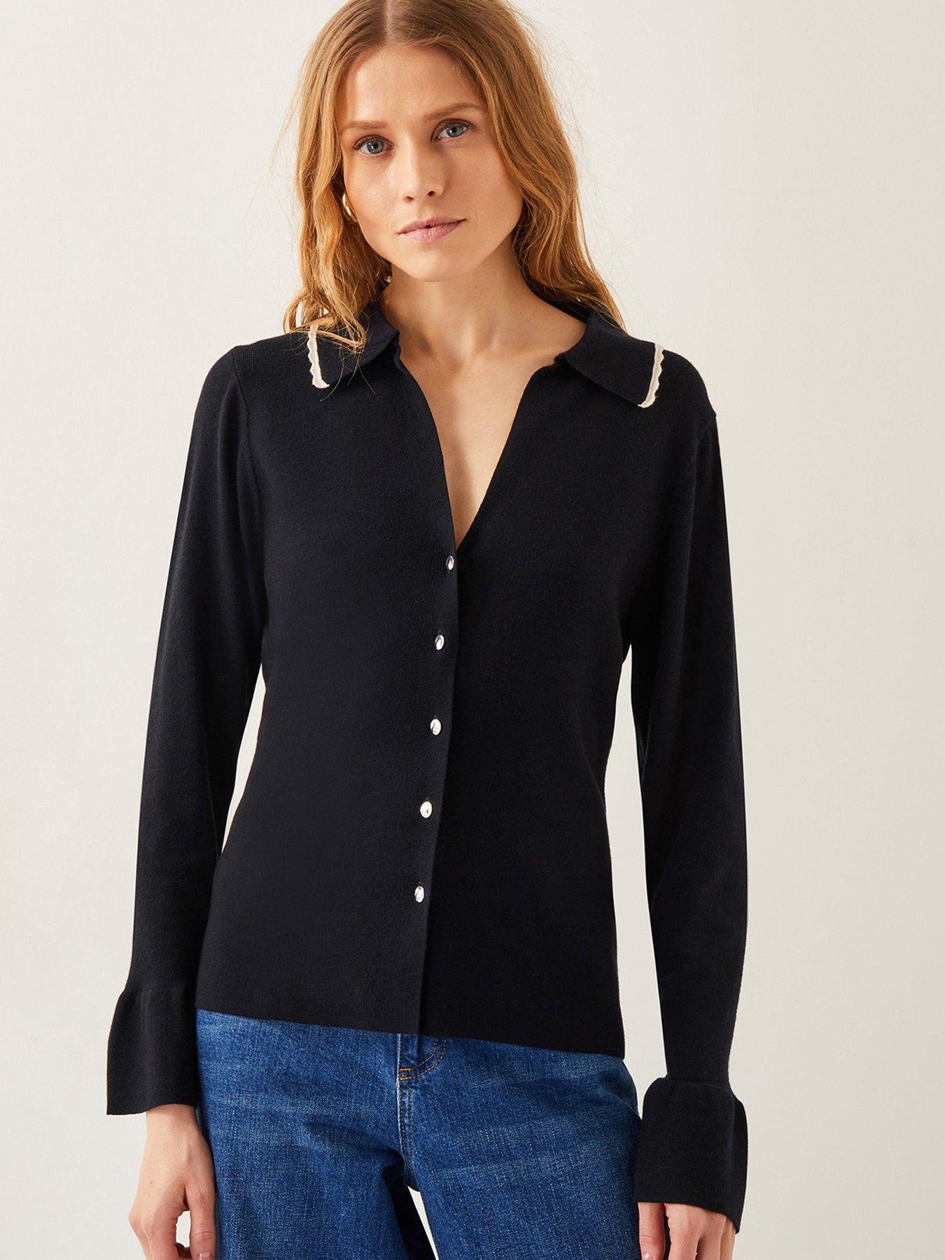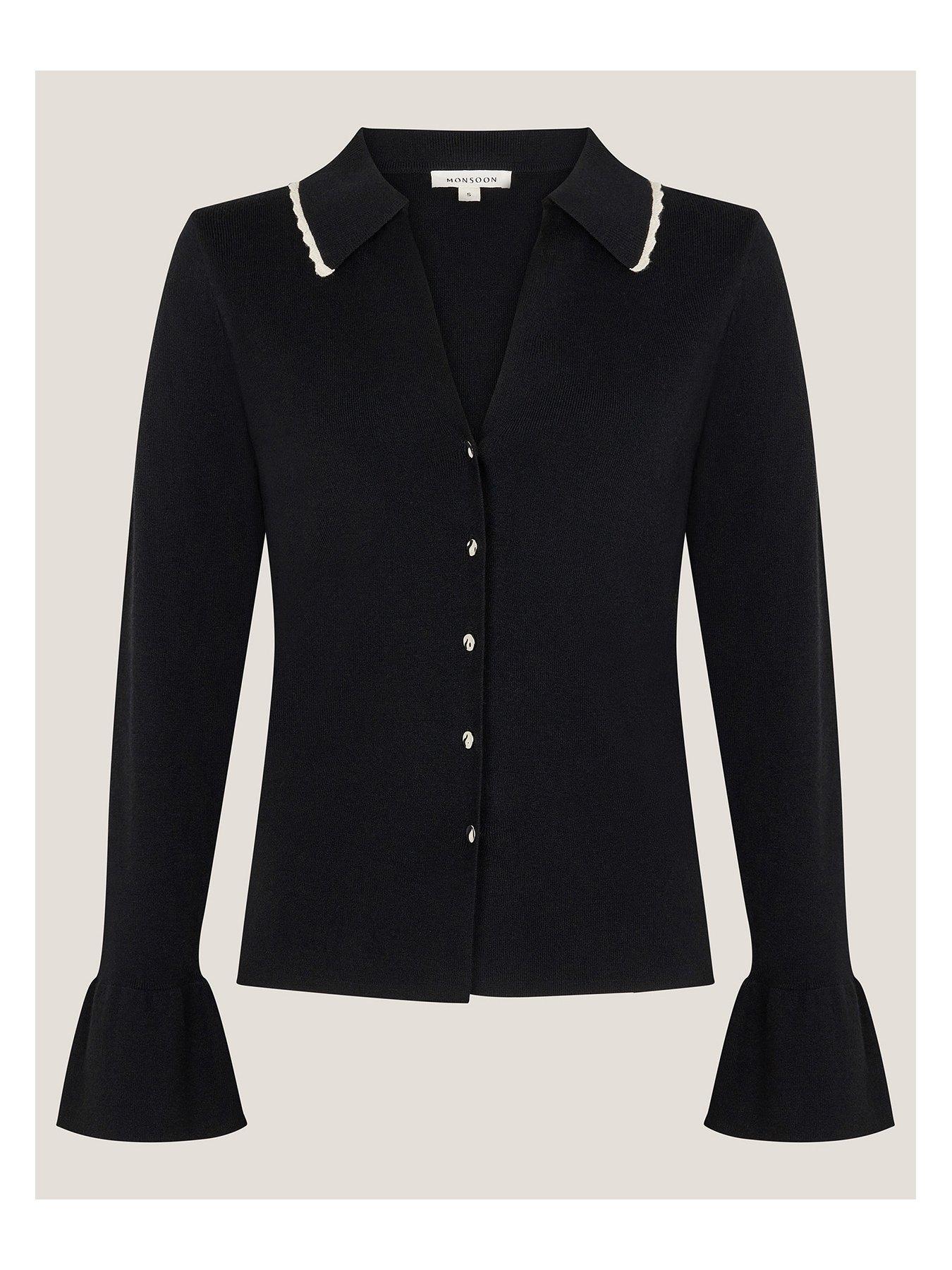 Monsoon Bray Button CardiFeminine flair. A smart choice to wear to work (and after work drinks), this cardigan is framed with a contrast scalloped collar and long sleeves with fluted cuffs. Finished with front button fastenings.About the brand: Monsoon combines artisanal craftsmanship, beautiful prints and rich colour to create its distinctive look. Drawing inspiration from global influences, the brand designs pieces that feel unique yet timeless. Each collection carries a sense of bohemian spirit and effortless elegance. |