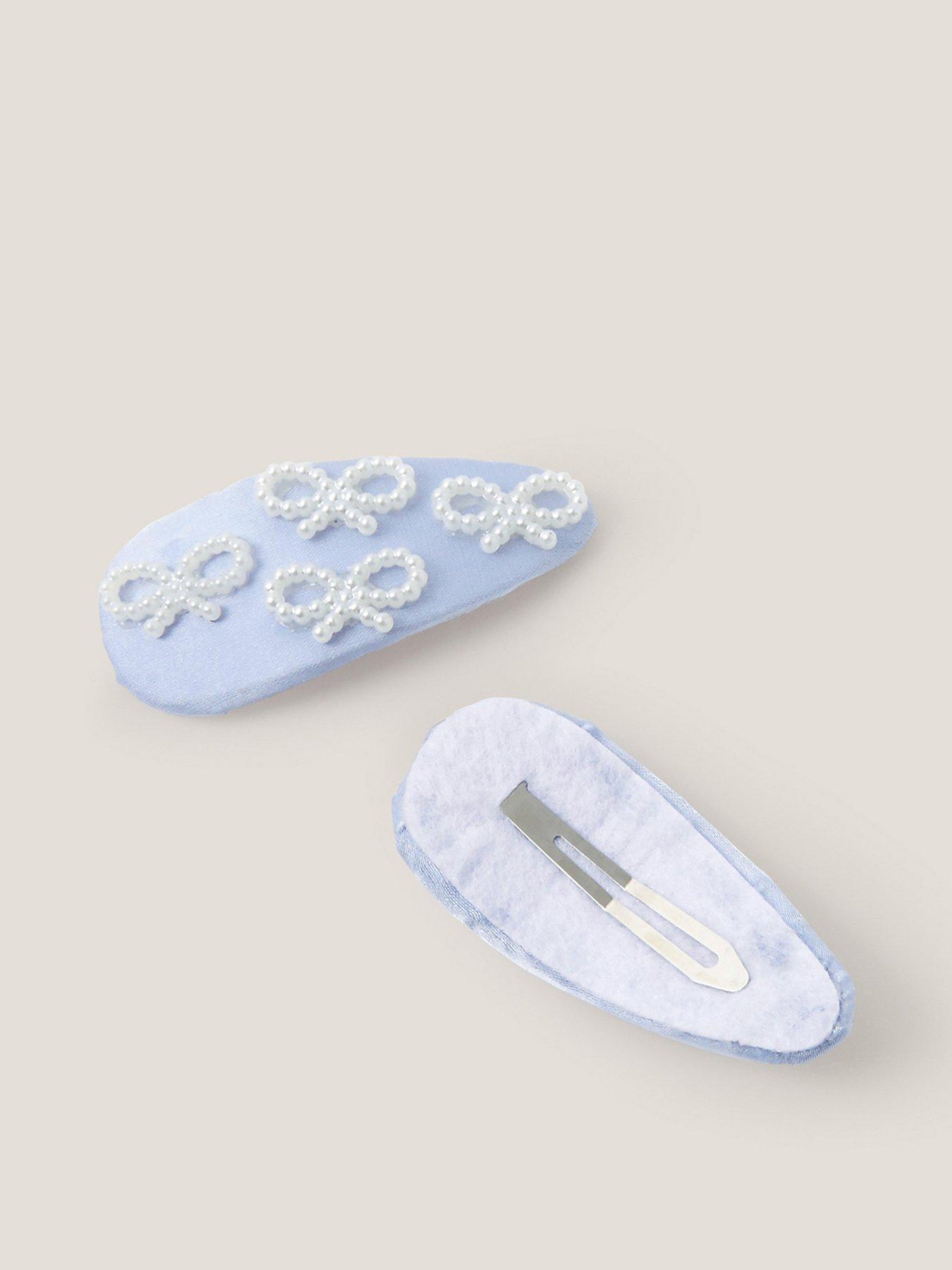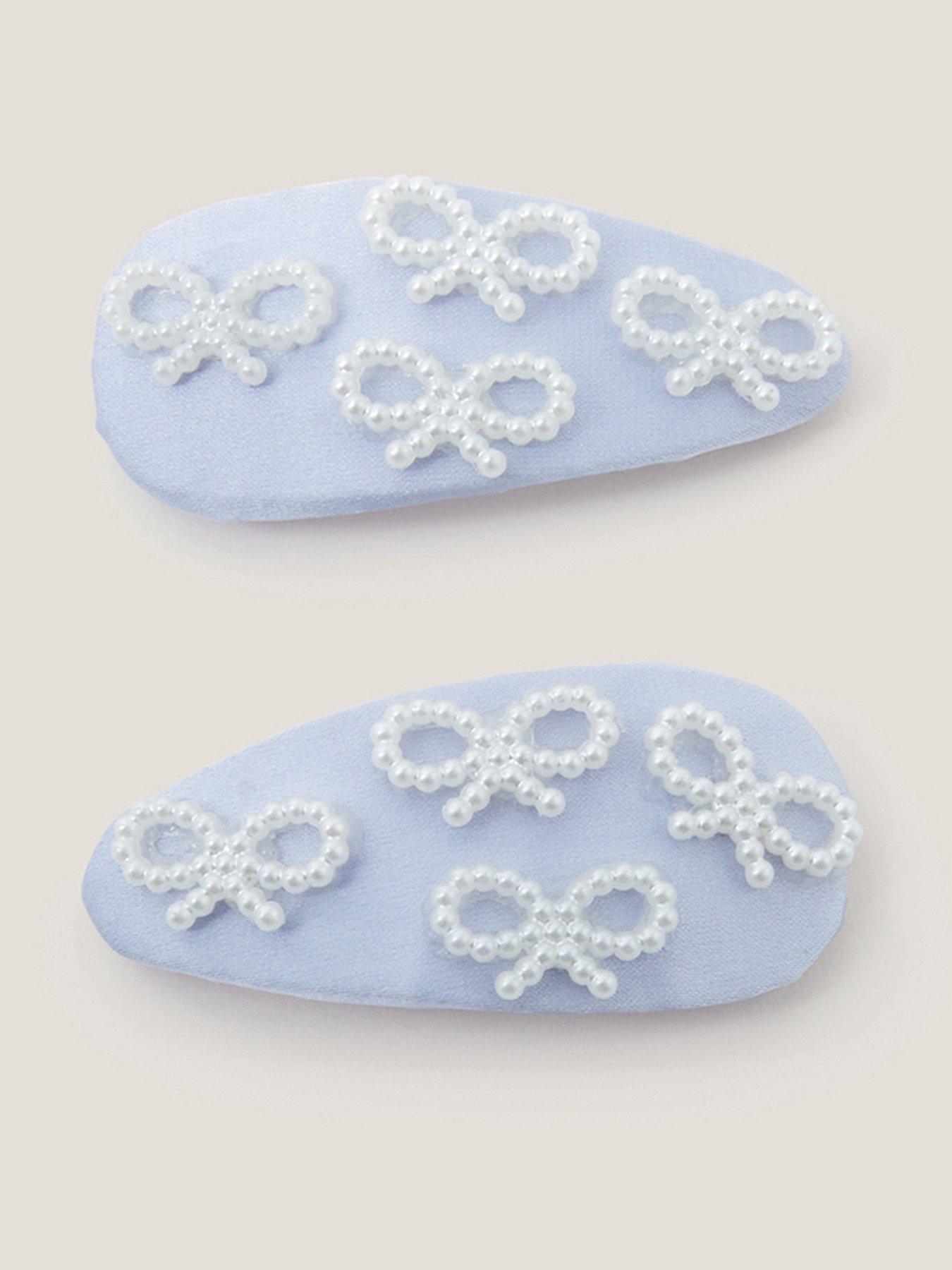 Monsoon Girls 2 Pack Pretty Bow Clickclacks - Light BlueOooh, fancy! Designed in Bridgerton blue, these hair clips are embellished with pearly bows for a pretty, polished finish. Sold as a set. Warning! Choking Hazard - Small parts. Not suitable for children under 3 years old.