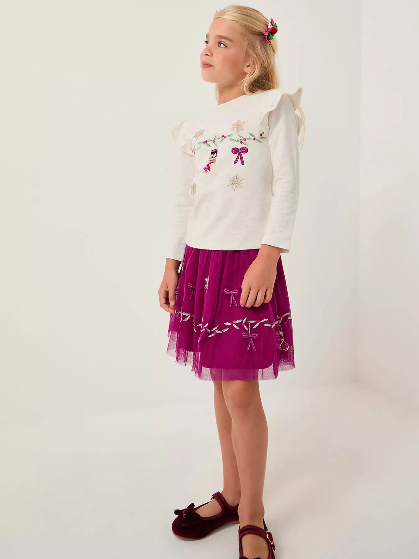 All I want for Christmas is... cute! Perfect for holiday celebrations, this set includes a frilly long sleeve top and matching tulle skirt with festive embroidery to finish. Now, which way to the dancefloor?- Material Content: Lining: polyester crepe 100%, Top: Cotton (b) 99%, Metallised Fibre 1%