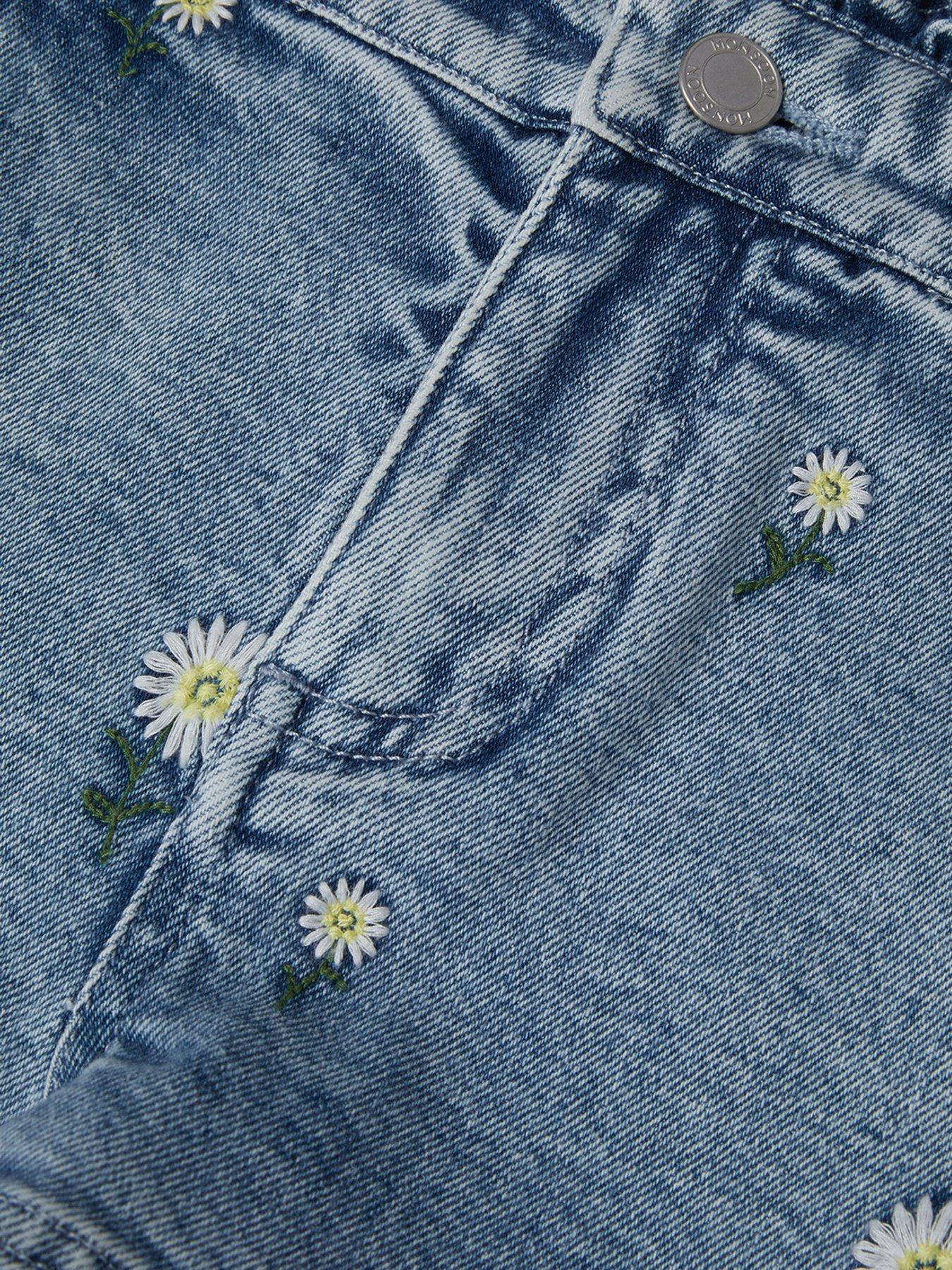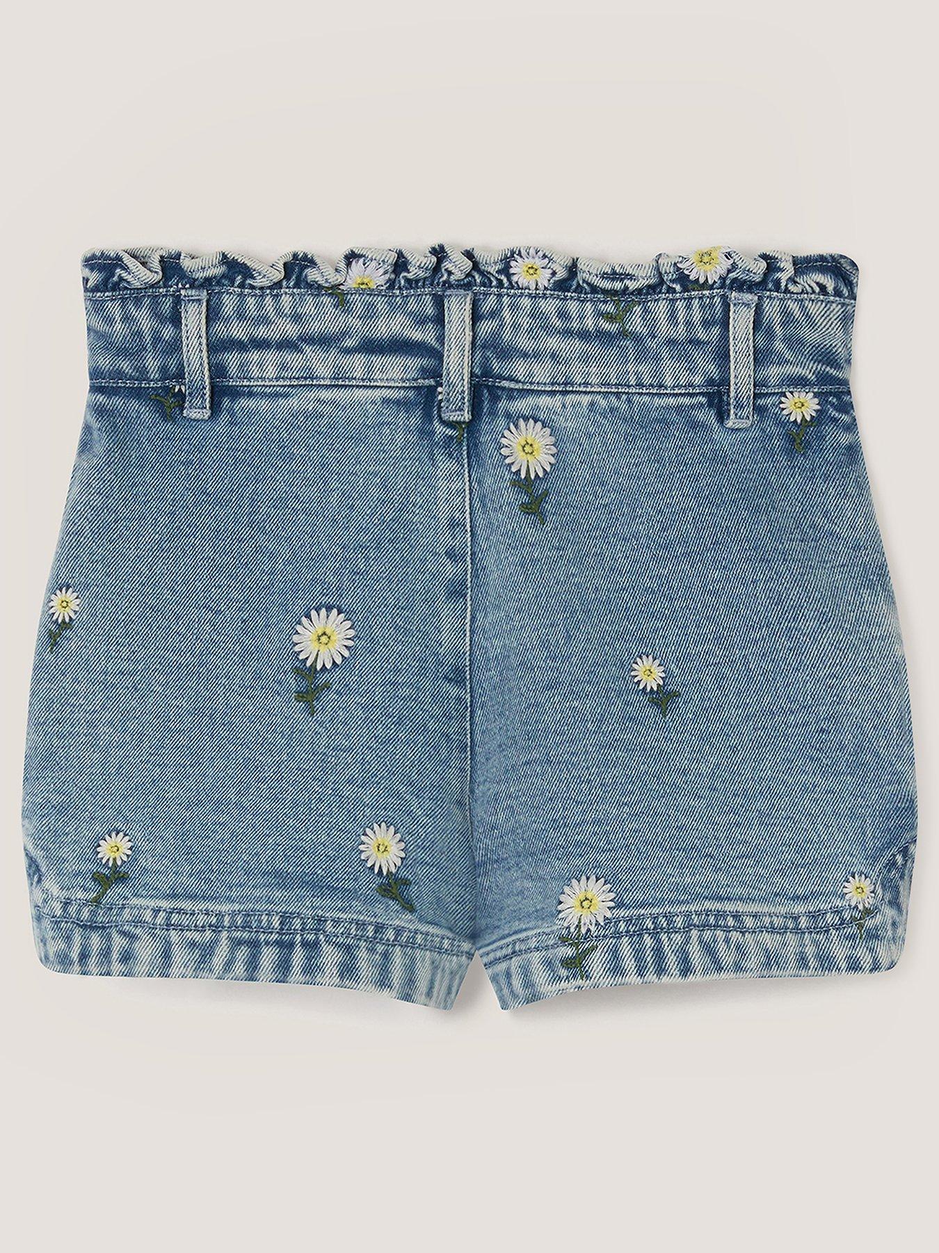 Monsoon Girls Daisy Embroidered Denim Shorts - BlueSummer uniform. An easy go-to for whenever the sun is shining, these shorts are great for beach days, playing in the park and day trips on holiday. Designed in blue denim, they're stitched with embroidered daisy motifs