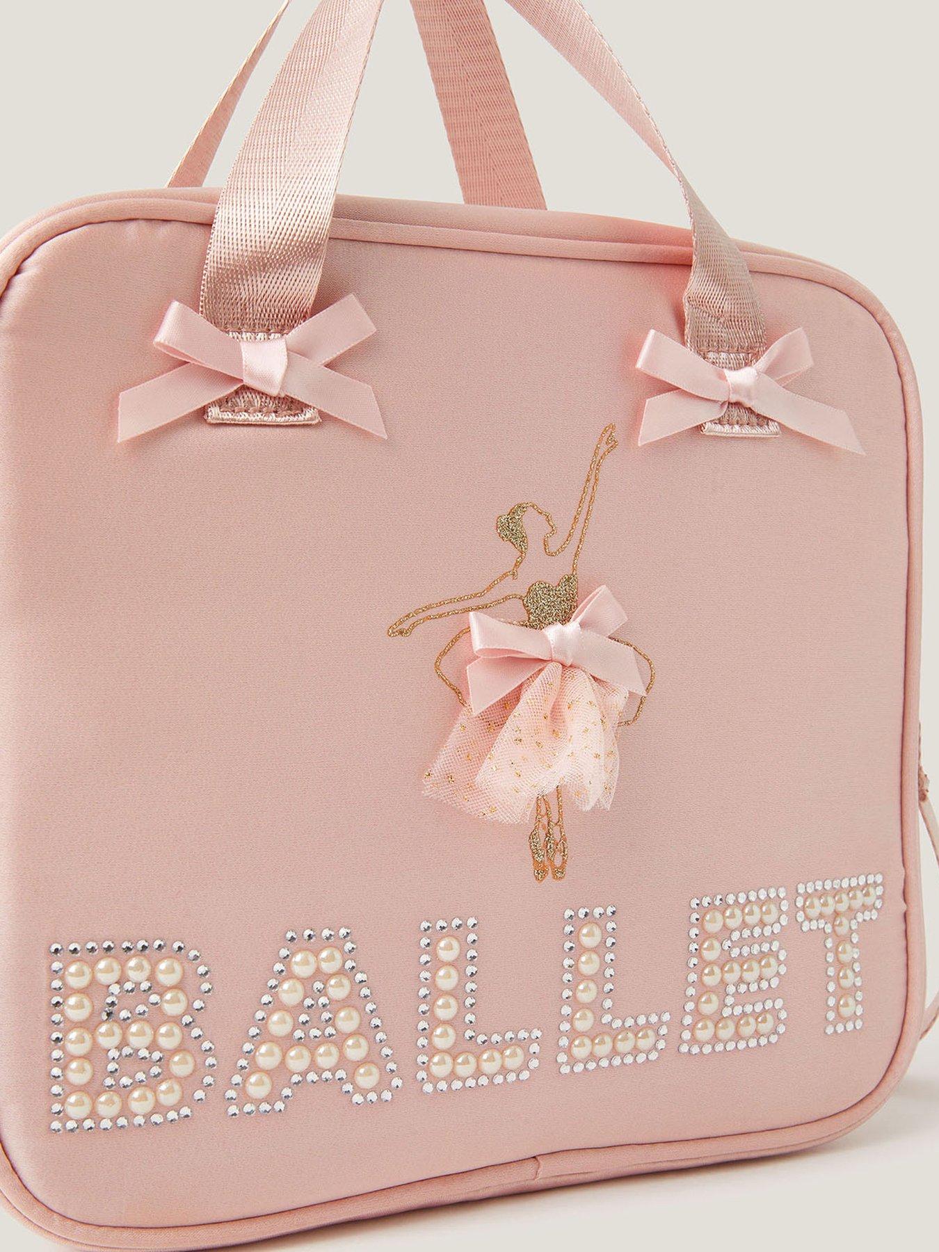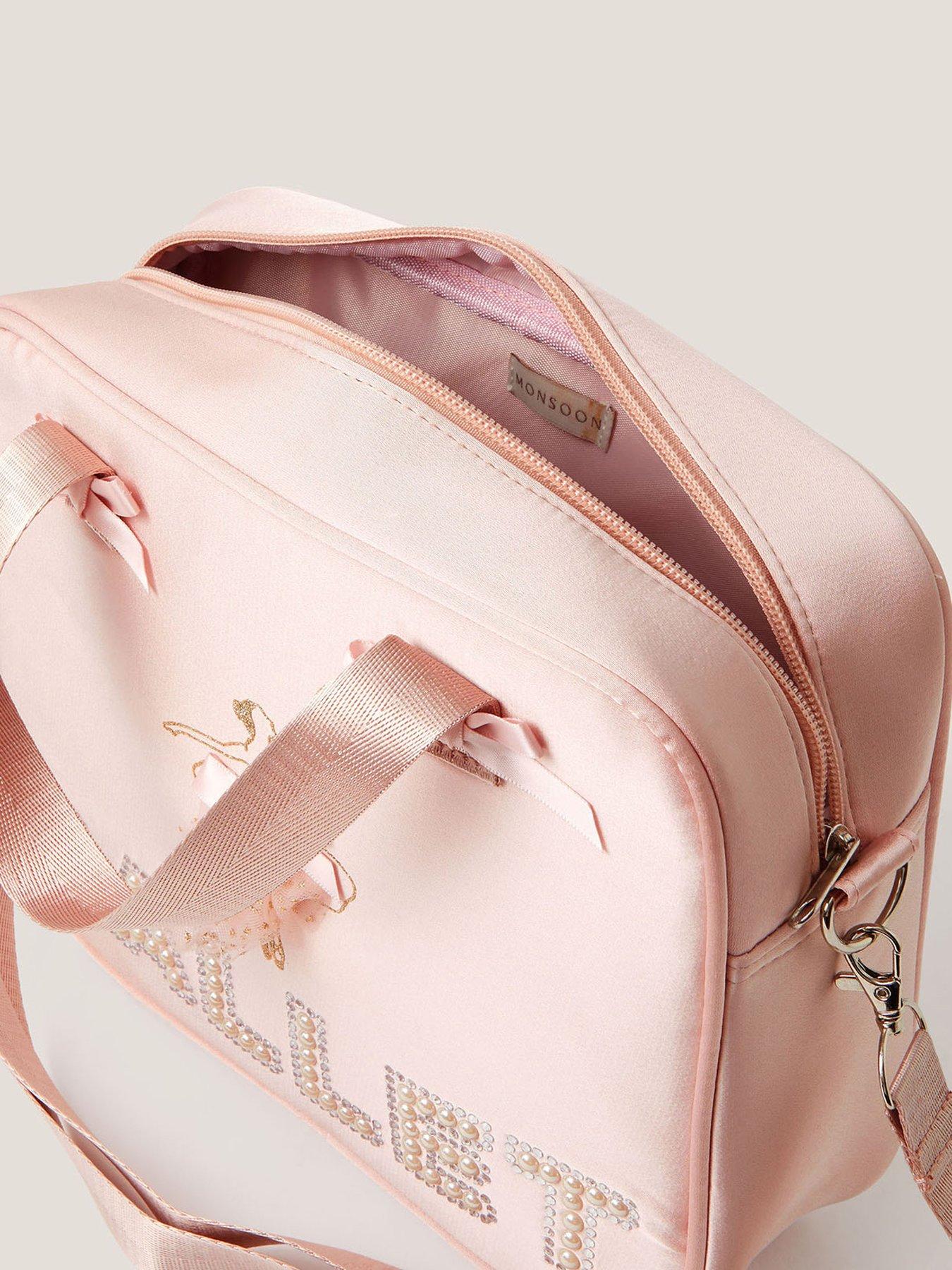 Monsoon Girls Darcy Ballet Bag - PinkStar of the show! The perfect pick for carrying all their dance class essentials, this bag is made in slipper pink satin with a bedazzled ballet design on the front. Features a main zip compartment, two top handles and an adjustable strap to style across the body.