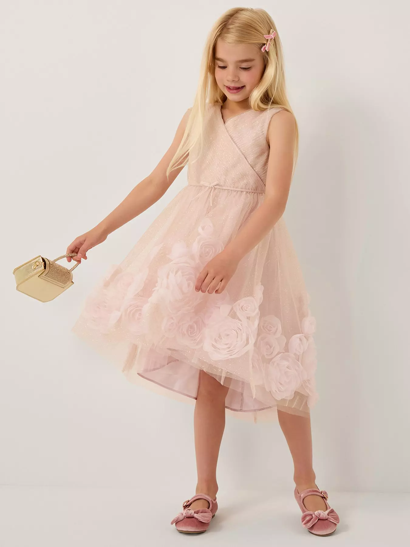 E.A.N: 5 0 4 5 4 6 4 7 2 5 2 4 8Monsoon Girls Glinda Glitter 3d Roses Dress - Pink