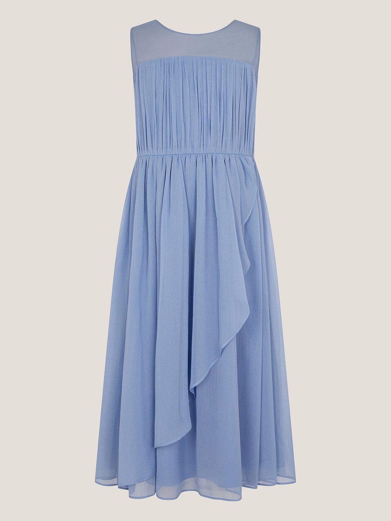 Monsoon Girls Imogen Wrap Chiffon Maxi Dress - Light BluePOV: They're a social butterfly. Simple yet elegant, this dress is made for every type of special occasion. The sleeveless bodice is topped with a sheer neckline and pleated finish, whilst the long skirt showcases a faux-wrap ruffle that swishes with every step.