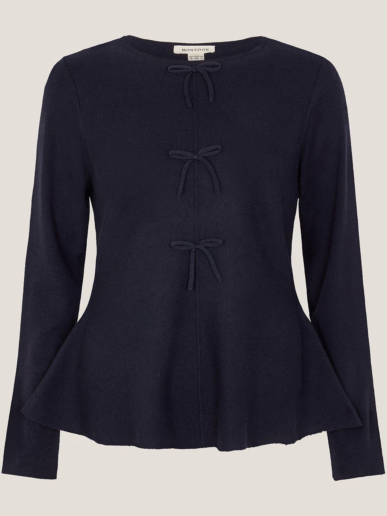 Monsoon Paula Peplum Bow Jumper BlueSize & Fit