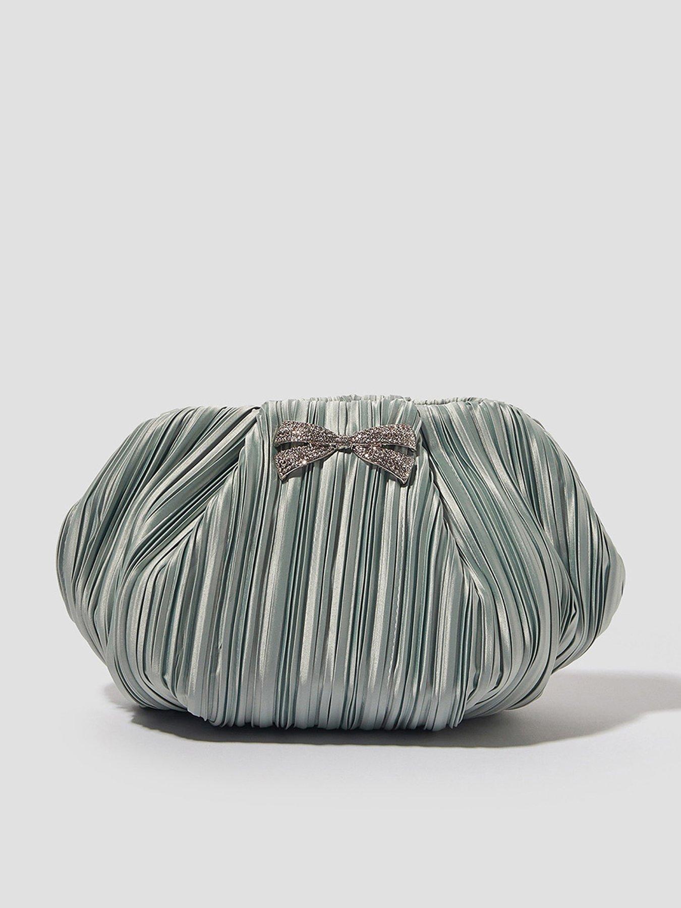 Monsoon Pen Pleated Bow Clutch - SageAbout the brand: Monsoon combines artisanal craftsmanship, beautiful prints and rich colour to create its distinctive look. Drawing inspiration from global influences, the brand designs pieces that feel unique yet timeless. Each collection carries a sense of bohemian spirit and effortless elegance. |